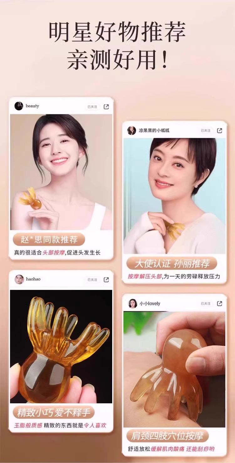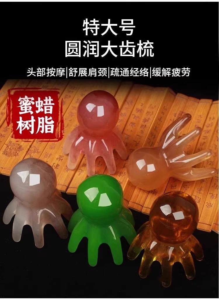Peine de Masaje Pulpo Masajeador de Meridianos para Cabeza Peine para Terapia de Acupuntura del Cuero Cabelludo Pulpo Portátil Dientes Anchos Grandes Peine Rascador