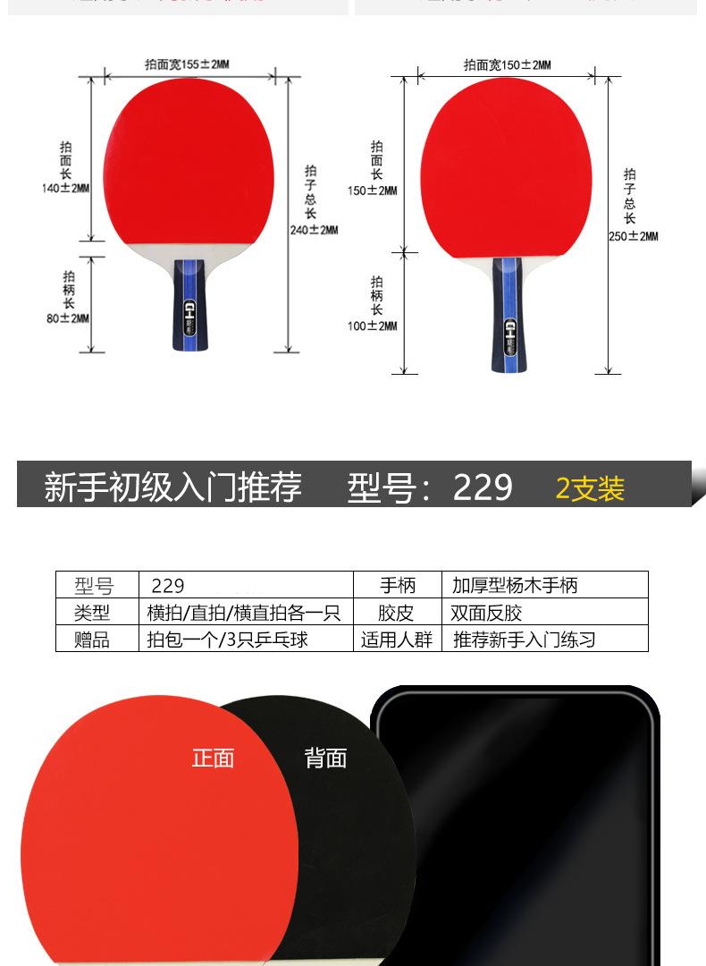 Paquete de 2 Raquetas de Tenis de Mesa Samsung Raqueta Individual y Doble Producto Terminado Raqueta Bingbing Raqueta Recta Raqueta Horizontal Set para Niños Estudiante