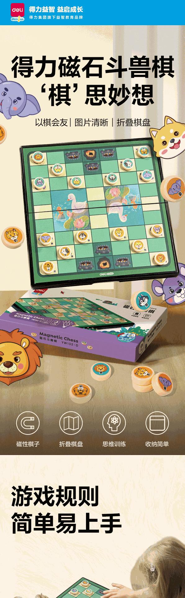 Deli Yw132-D Ajedrez Bestia Magnética Plegable Tablero de Ajedrez Portátil Infantil Estudiantil Ajedrez Magnético Juguete Educativo