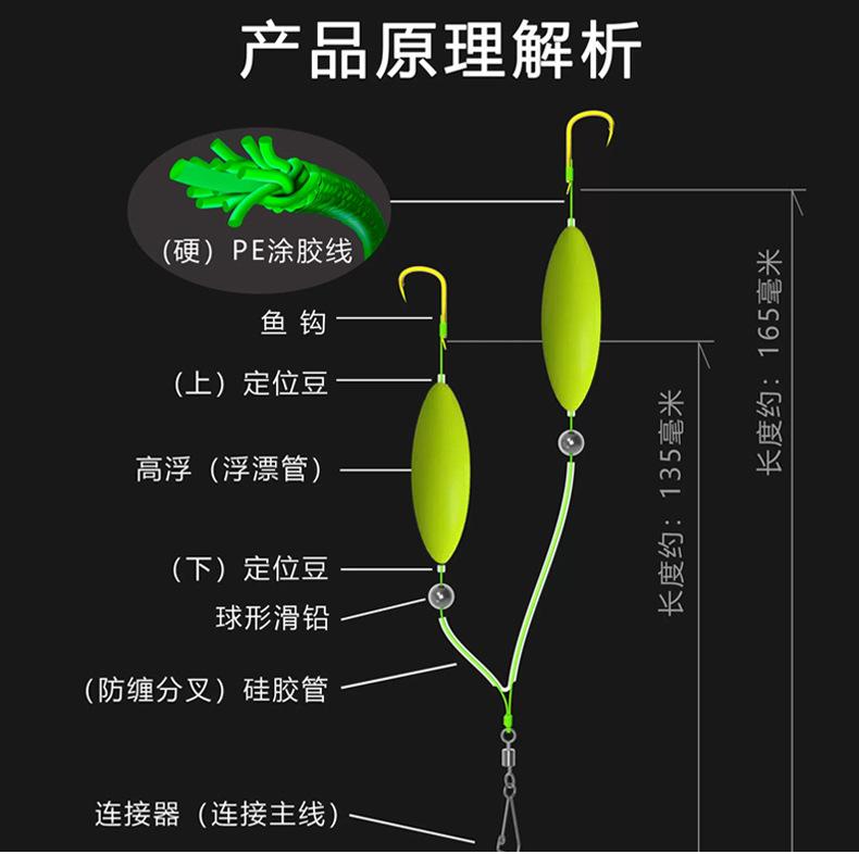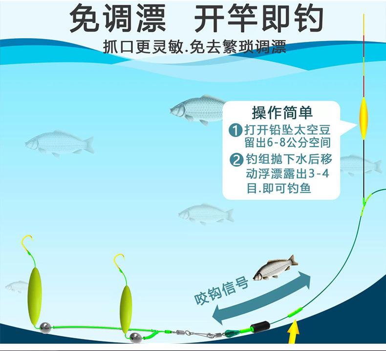 Línea anti-base, doble anzuelo, acabado para peces, carpa cruciana, flotador de siete estrellas, línea de deriva luminosa de búsqueda de fondo automática, traje de grupo