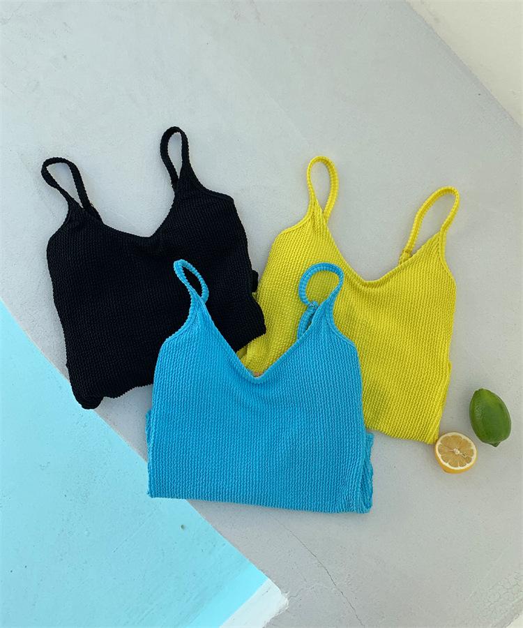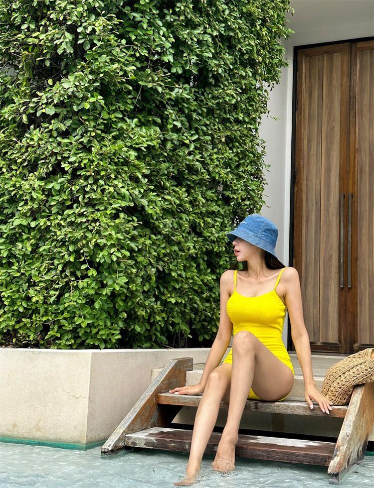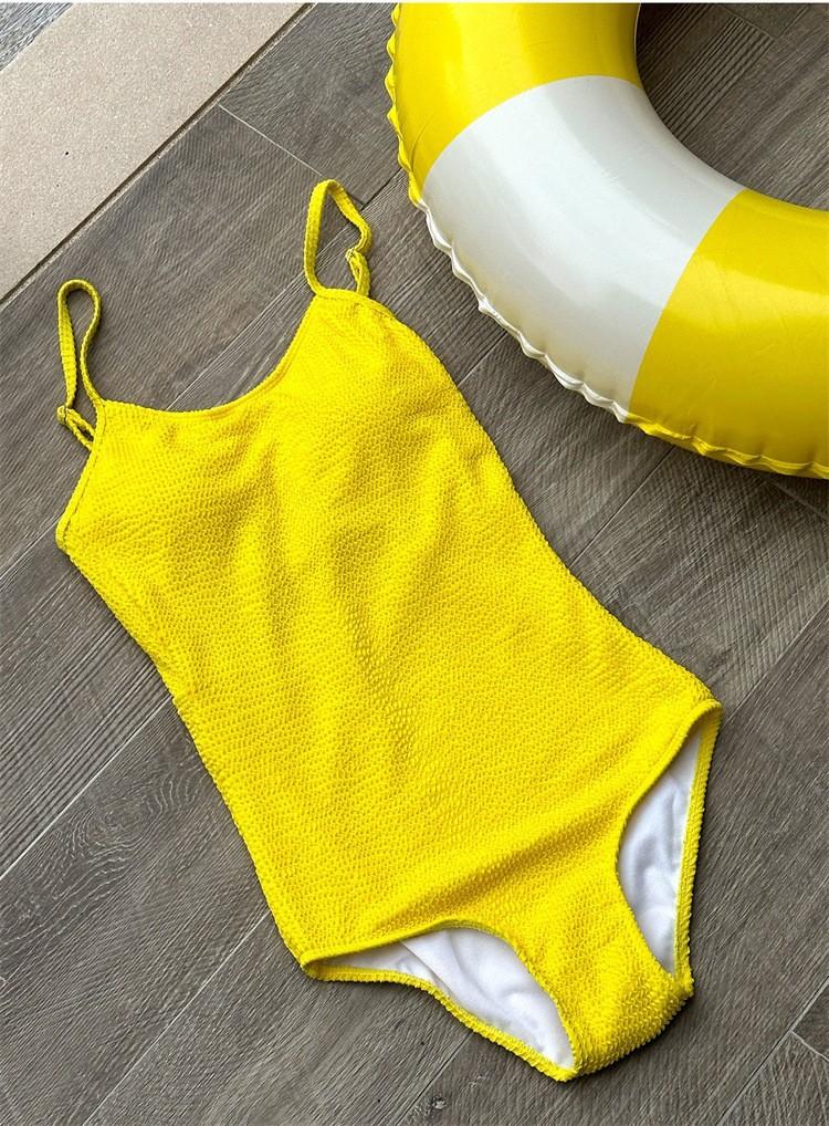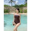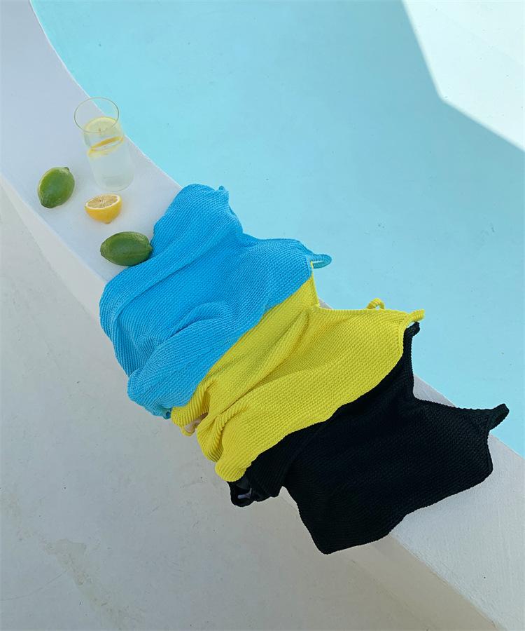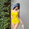 Traje de baño de una pieza para mujer, de color sólido, ajustado, triangular, adelgazante, para vacaciones en aguas termales, traje de baño de secado rápido, estilo ins