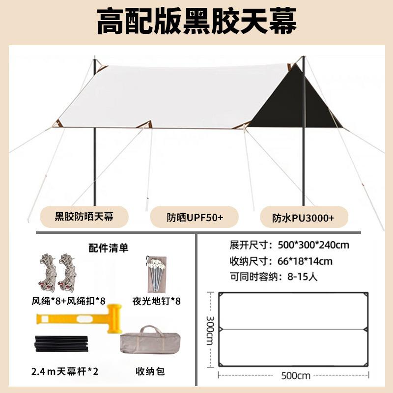 Carpa con dosel de goma negra, impermeable, pérgola portátil con revestimiento de plata, tela protectora solar, para acampar al aire libre, a prueba de lluvia, toldo parasol