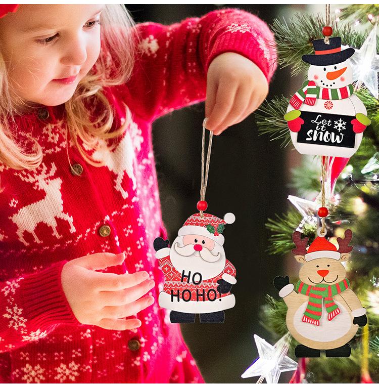 Nuevo adorno navideño transfronterizo, colgante de madera con impresión navideña, ideal para decorar el hogar, el centro comercial y el árbol de Navidad.
