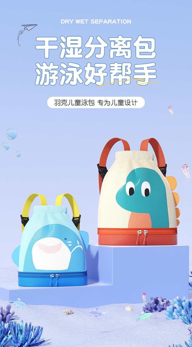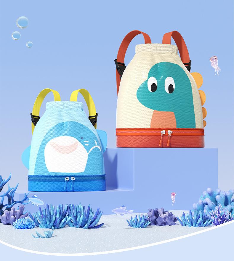 Bolsa de Natación para Niños Bolsa de Almacenamiento Bolsa de Dibujos Animados Impermeable Mochila de Separación Seco y Húmedo Bolsa de Entrenamiento de Hombro Playa Bolsa de Natación