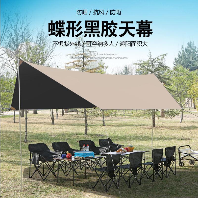 Tienda de campaña con dosel plateado y mariposa para exteriores, toldo grueso, impermeable, protección solar, protección UV, portátil, para acampar