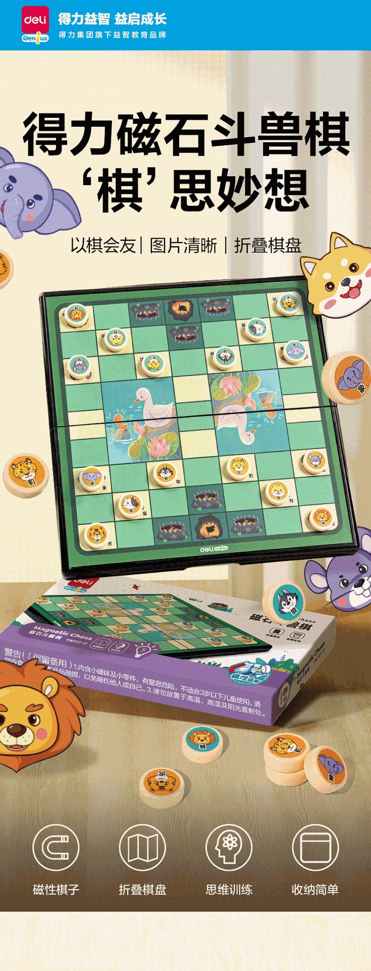 Deli Yw131-D Bestia Magnética Ajedrez Tablero de Ajedrez Plegable Almacenamiento Portátil Juego para Estudiantes Niños Juguetes Educativos