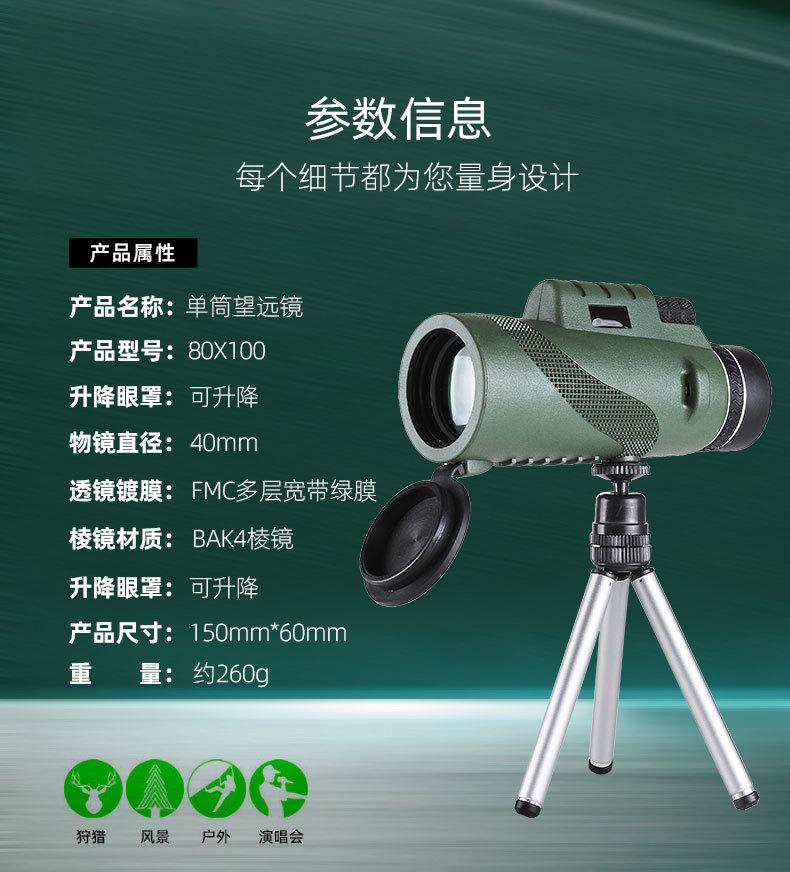 Telescopio monocular verde transfronterizo 10X42 de alta potencia, visión nocturna HD, portátil, para exteriores, fabricantes, venta al por mayor, gafas de comercio exterior