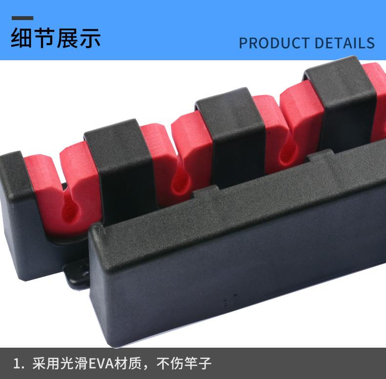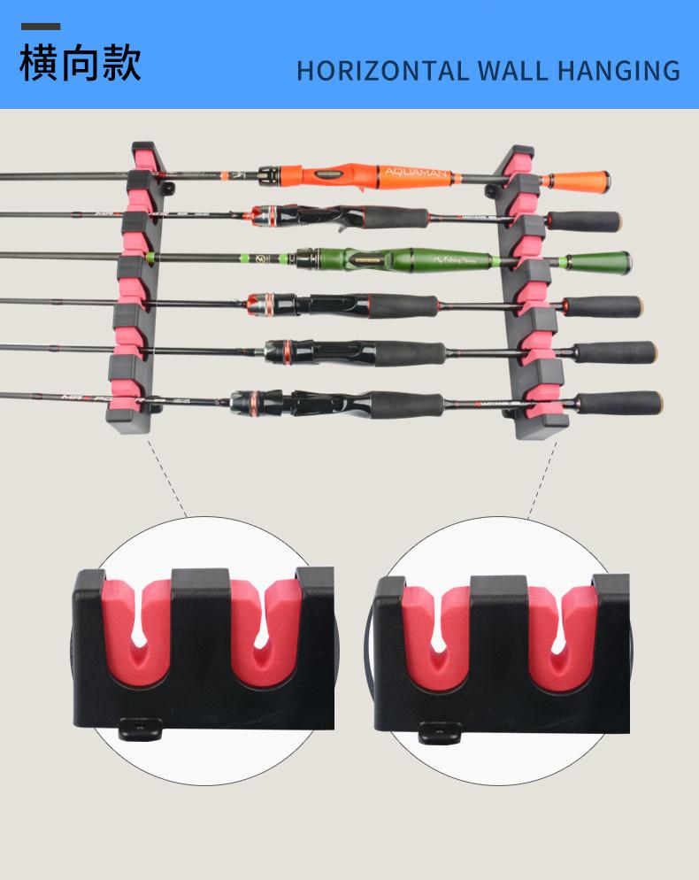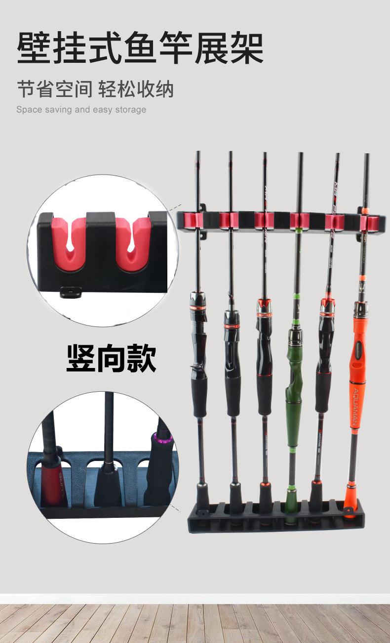 Estante de exhibición de cañas de pescar de pared, estante vertical multifuncional de 6 orificios para cañas de pescar, estante de almacenamiento de cañas de pescar, lote de accesorios de equipo de pesca de plástico