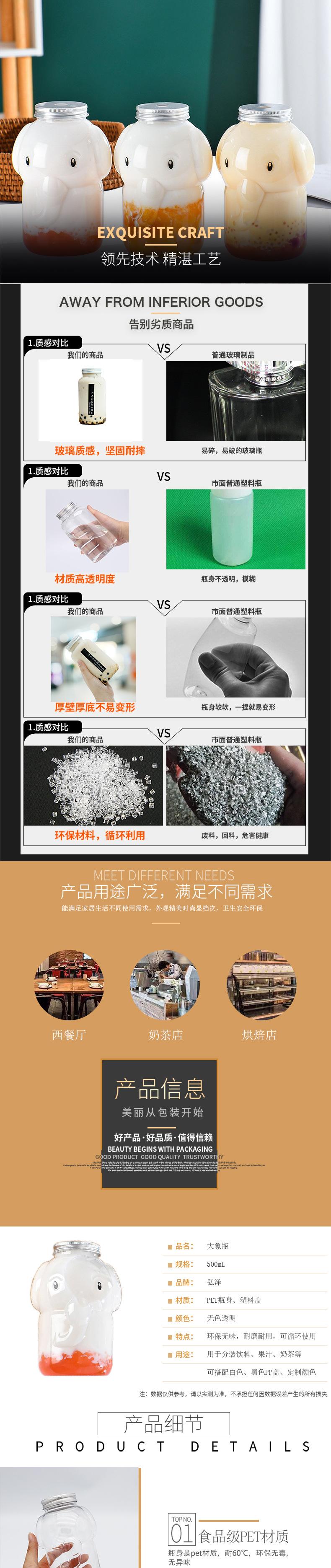 Botella de 500 ml de elefante de dibujos animados, botella desechable para bebidas heterosexuales, botella de PET de grado alimenticio para té con leche, cinturón infrarrojo neto