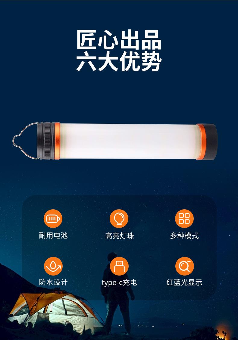 Tienda de campaña impermeable para exteriores, luz de camping, carga USB, luz colgante portátil multifuncional, linterna de alta potencia