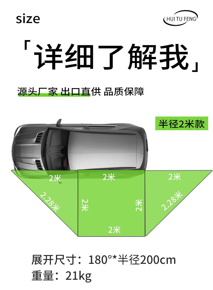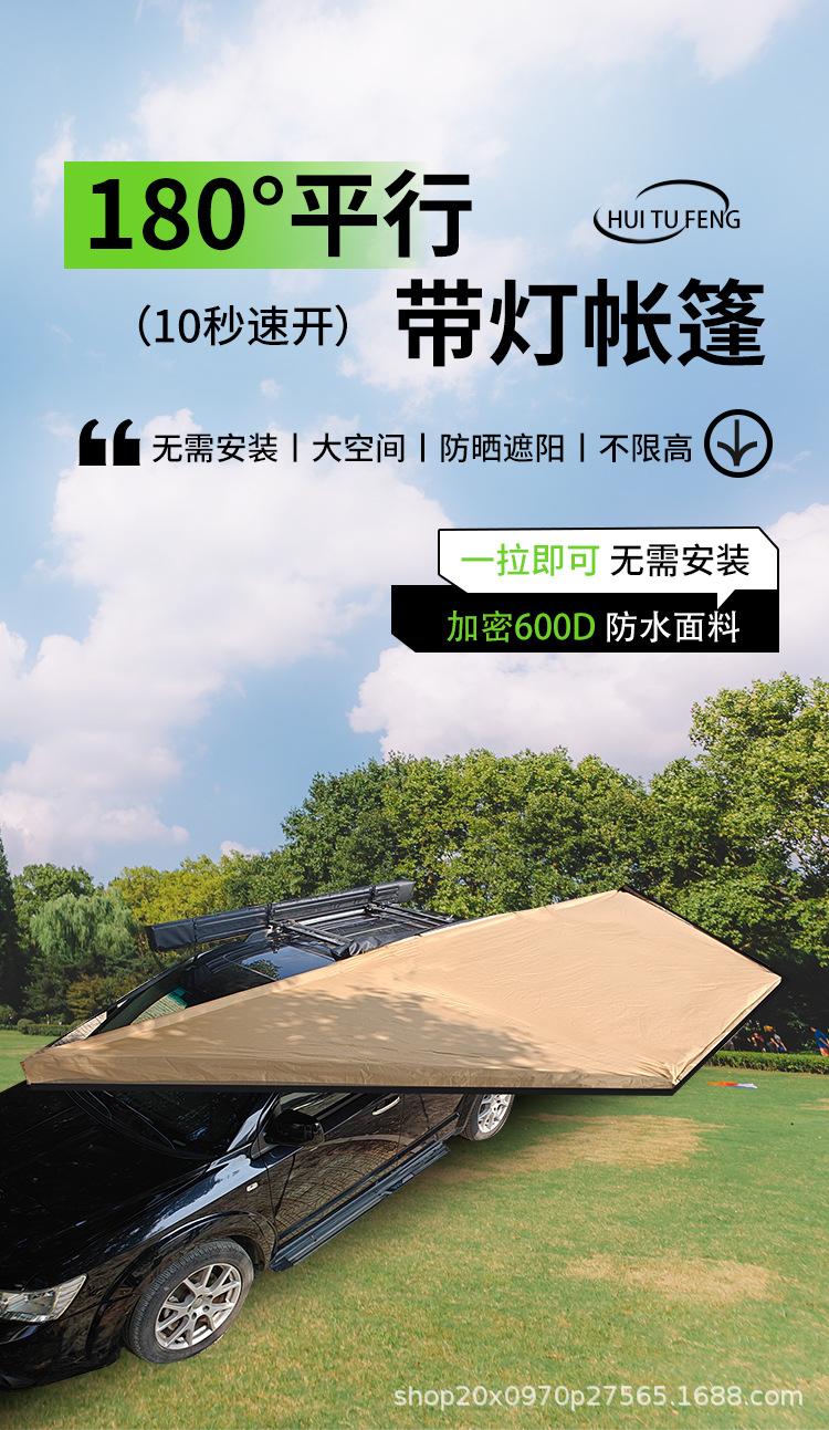 Toldo Lateral de Camping con Dosel de Apertura Rápida en Forma de Abanico de 180 Grados, Impermeable, Parasol con Luces, Toldo Lateral para Coche