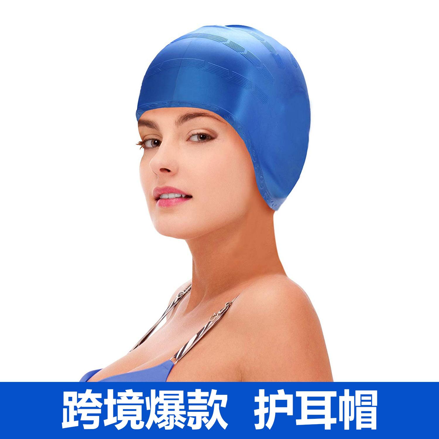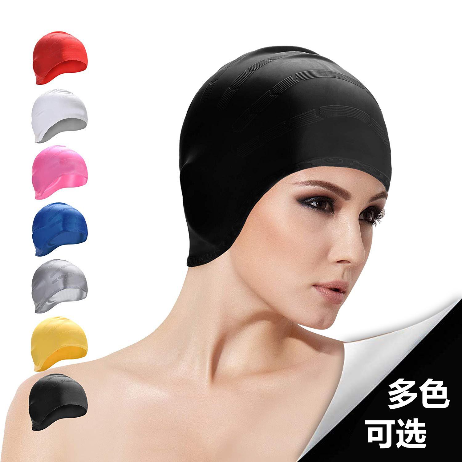 Gorro de Natación de Silicona Explosiva Transfronteriza con Protección para los Oídos Unisex para Cabello Largo Gorro de Natación con LOGO Imprimible Gorro de Natación de Silicona para Adulto