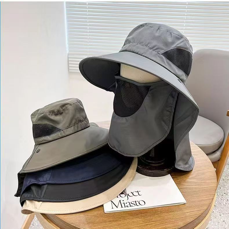 Sombrero de Pescador Verano Anti-UV Sombrero Parasol Pesca Cubre Cara Protección de Cuello Integrado Sombrero Protector Solar para Hombre Secado Rápido