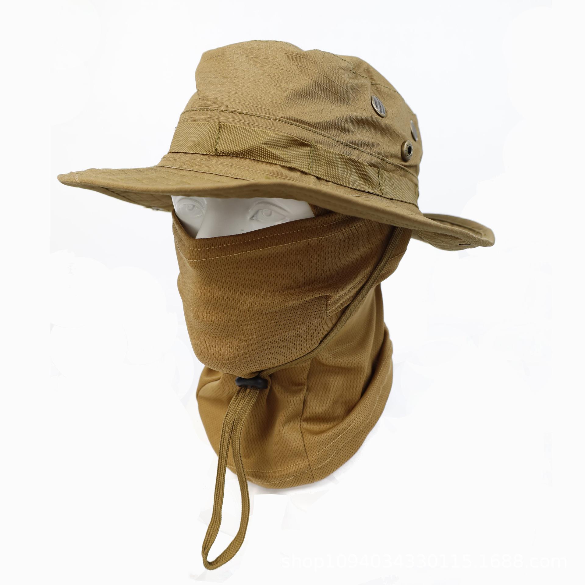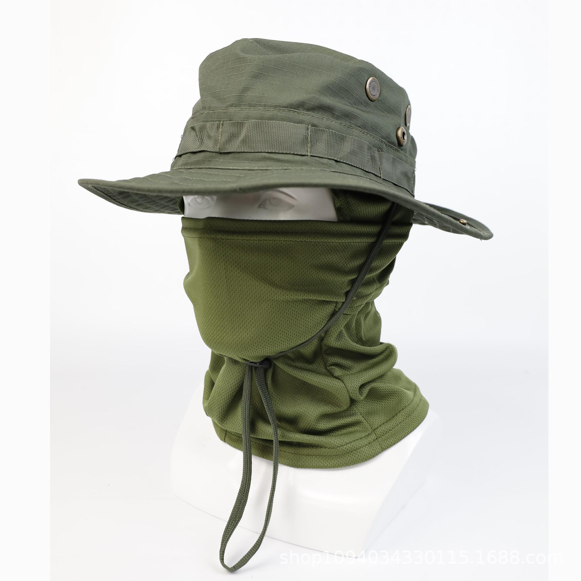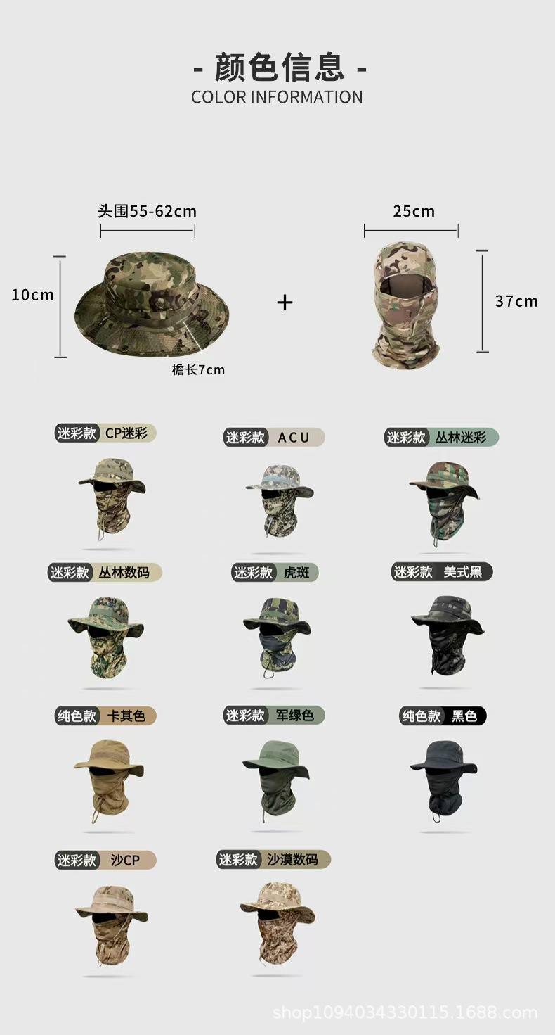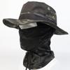 Sombrero de pescador con borde redondo y camuflaje para hombre, ideal para actividades al aire libre, montañismo, equitación, camping, pesca, protector solar, transpirable, de secado rápido, máscara facial completa.