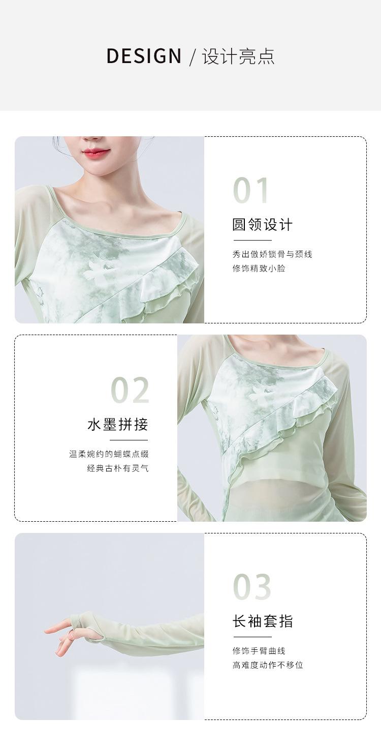 Ropa de danza clásica para mujer, malla elástica, manga larga, diseño de mariposa, para práctica de danza, nueva camiseta.