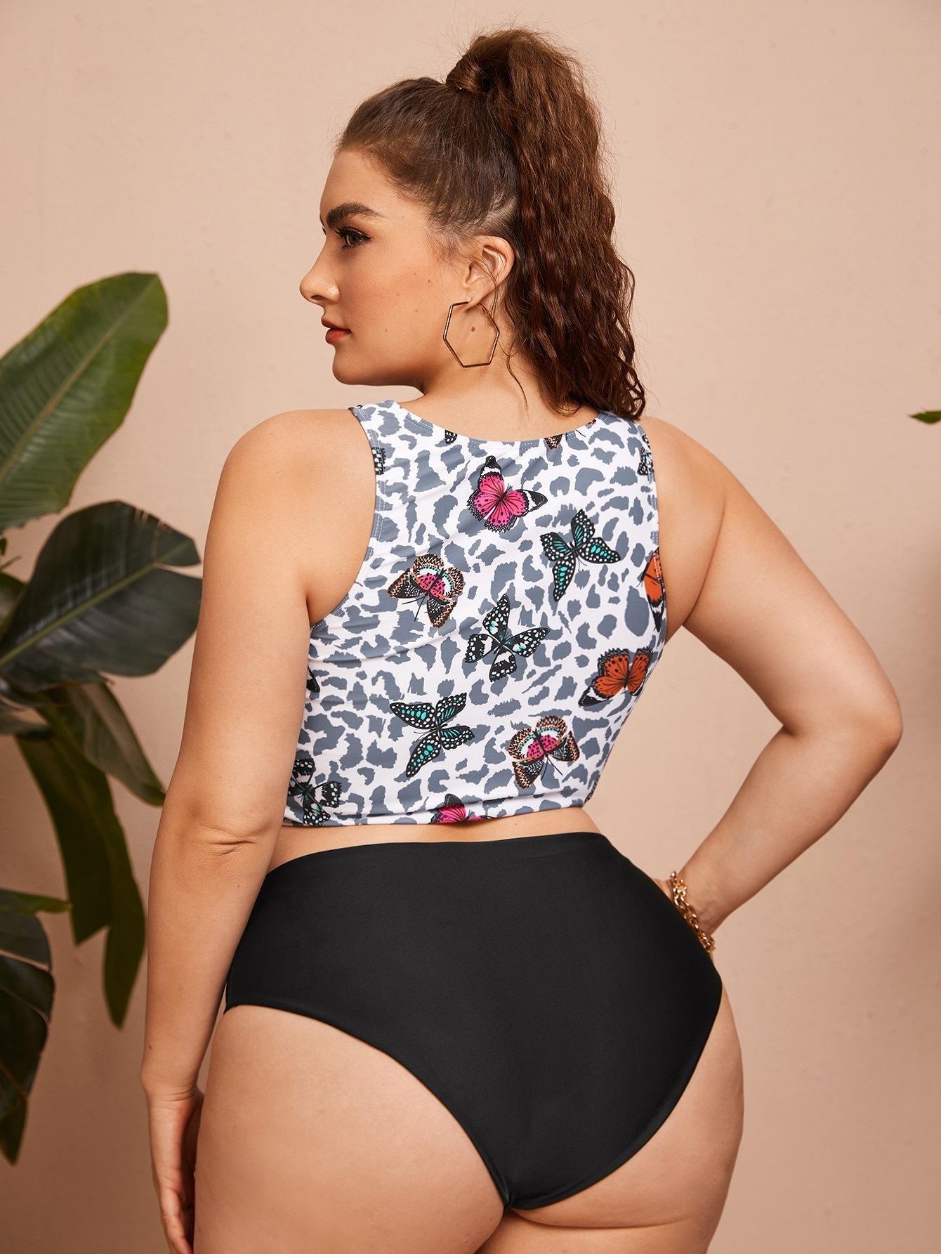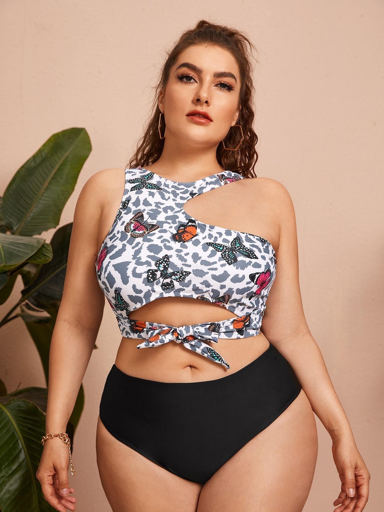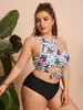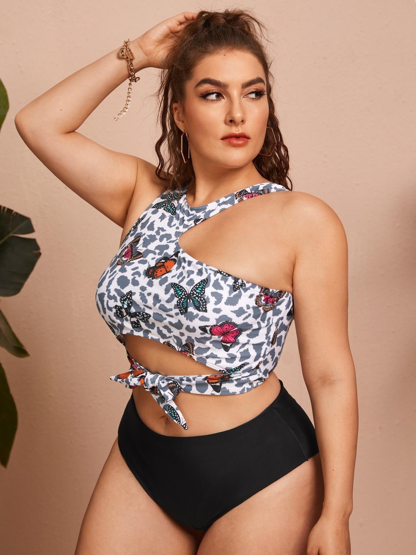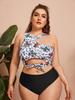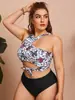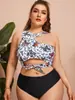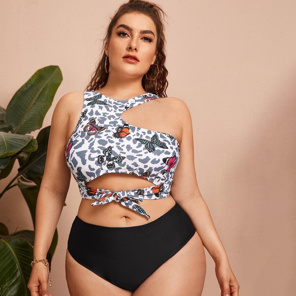 Traje de Baño Bikini Dividido Nuevo Caliente Europeo y Americano Estampado Sexy Cintura Alta Cubre Vientre Talla Grande para Mujer Traje de Baño para Mujer Gorda
