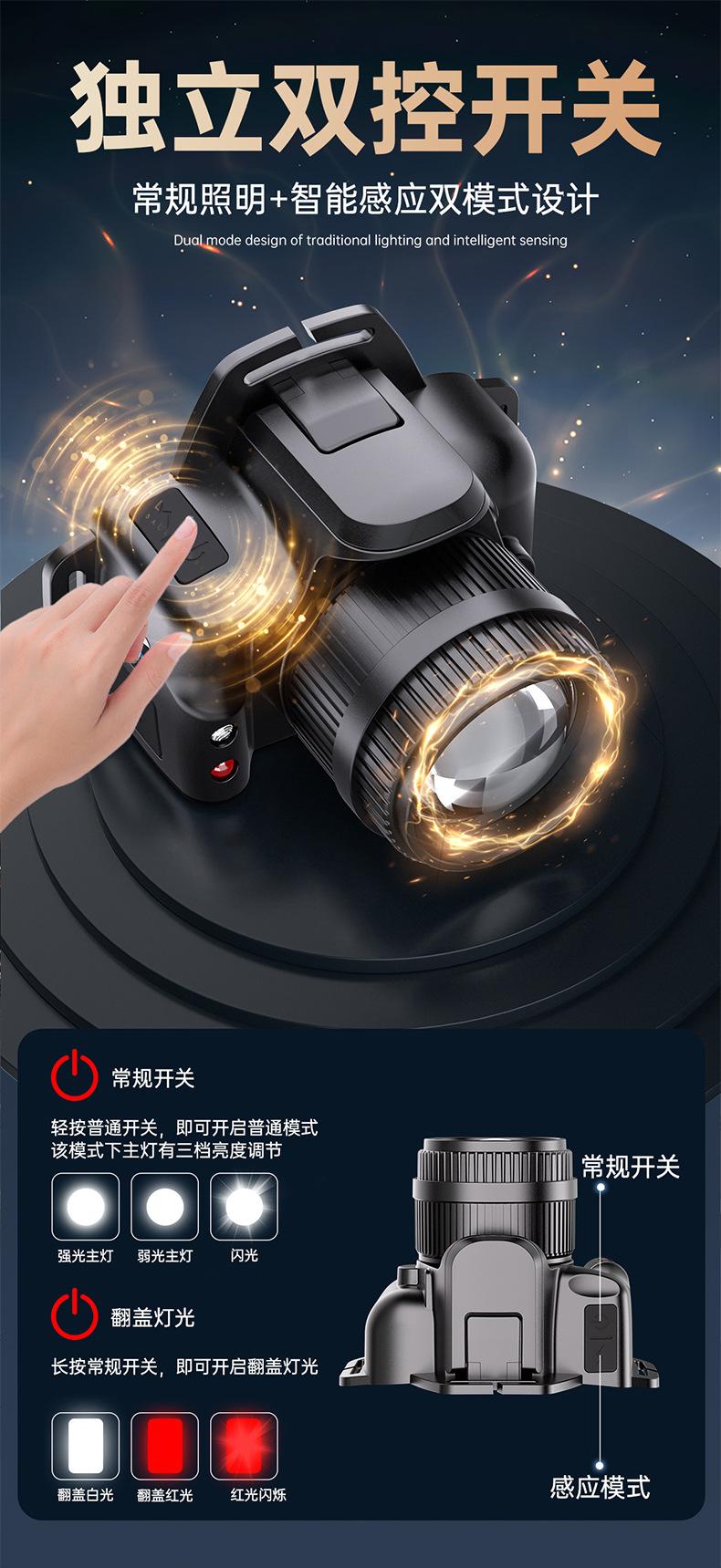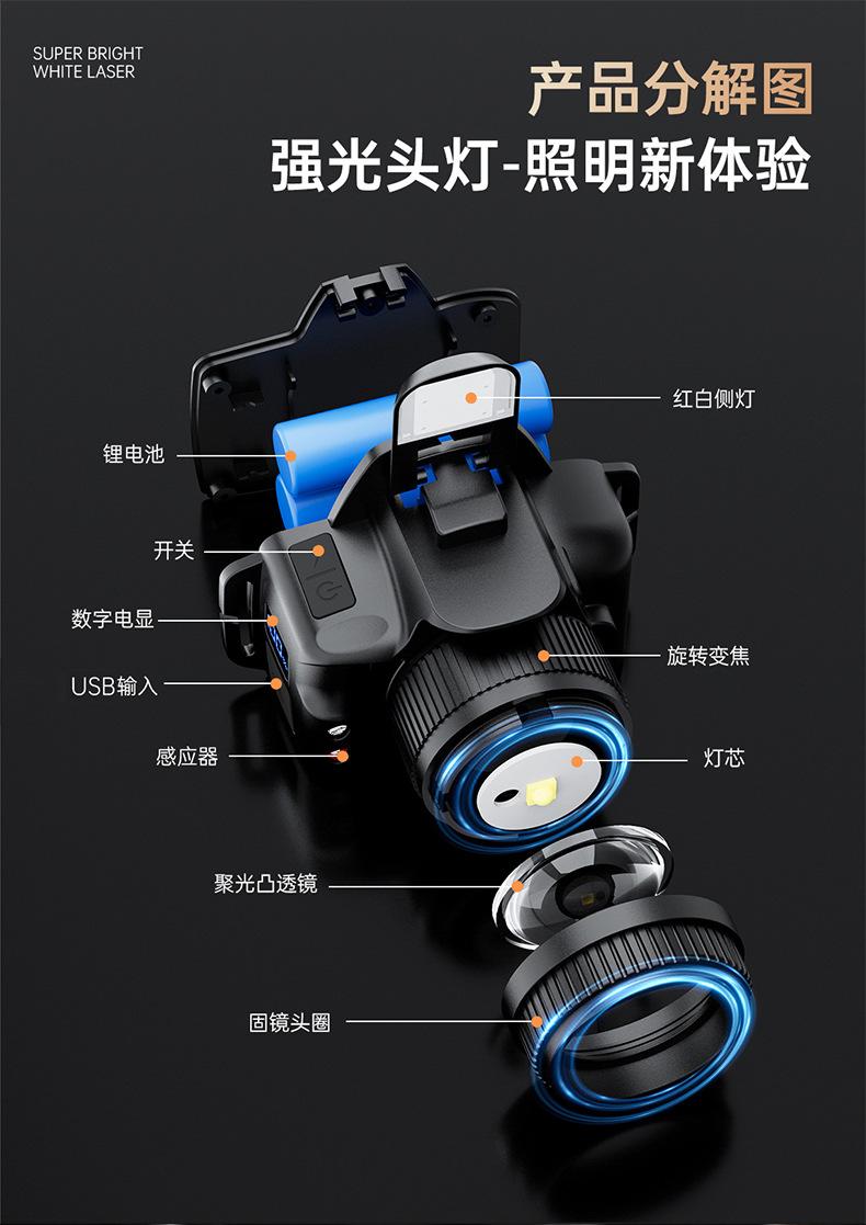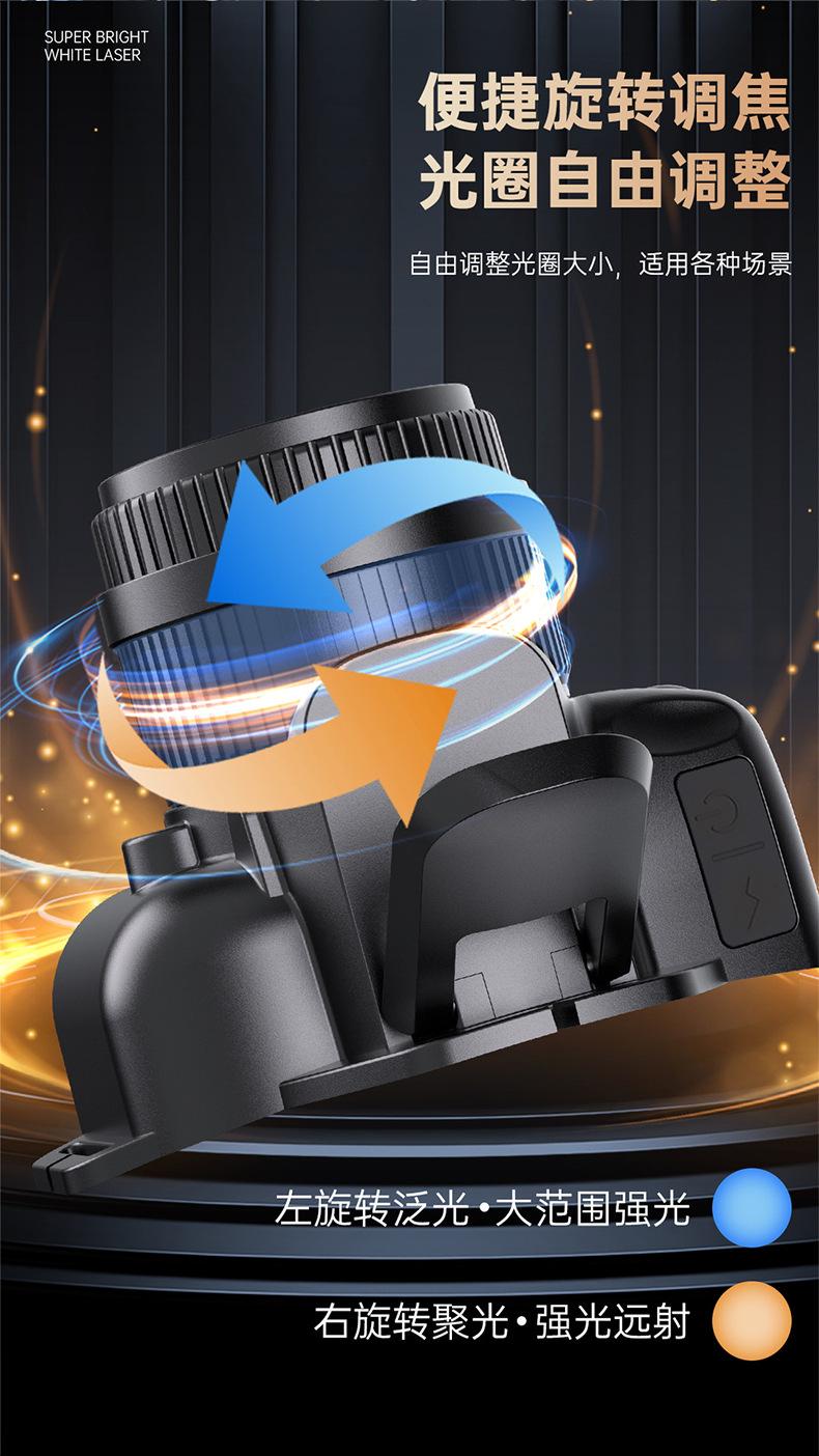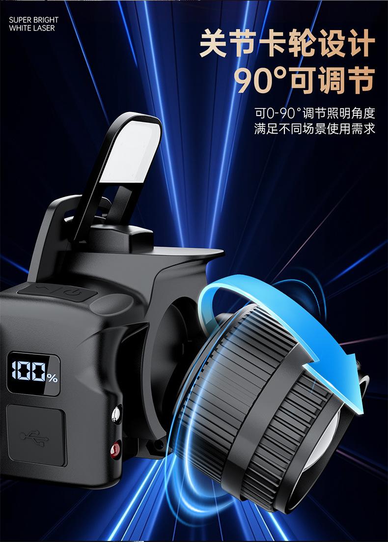 Vida de batería ultralarga transfronteriza Luz fuerte Alto lumen Exterior Portátil Zoom giratorio Alta potencia Iluminación de aventura Faro para pesca