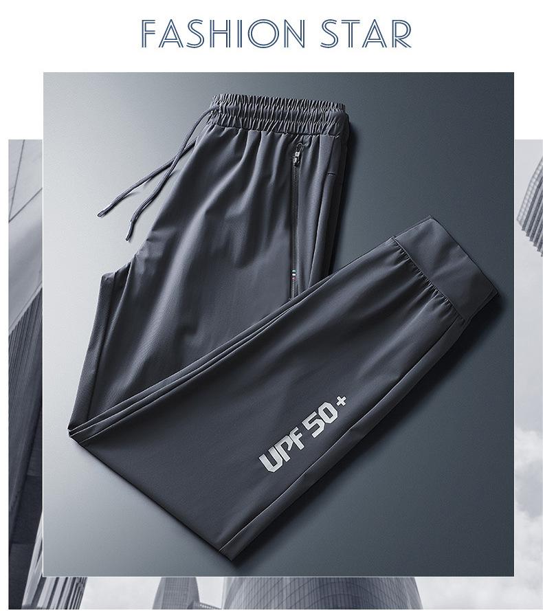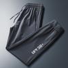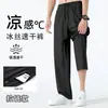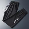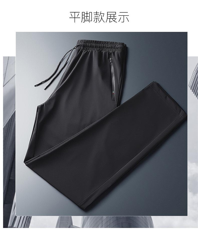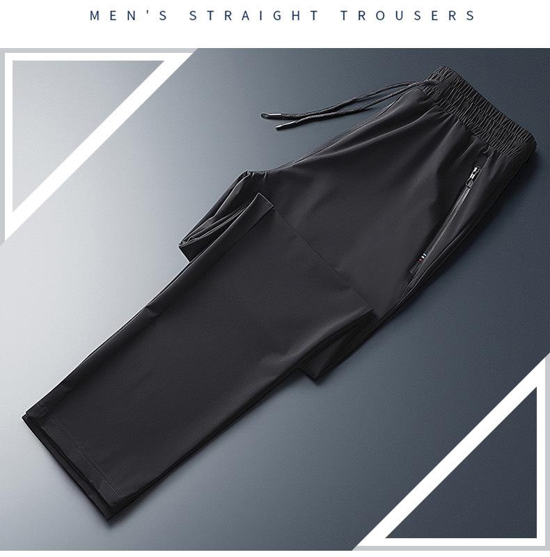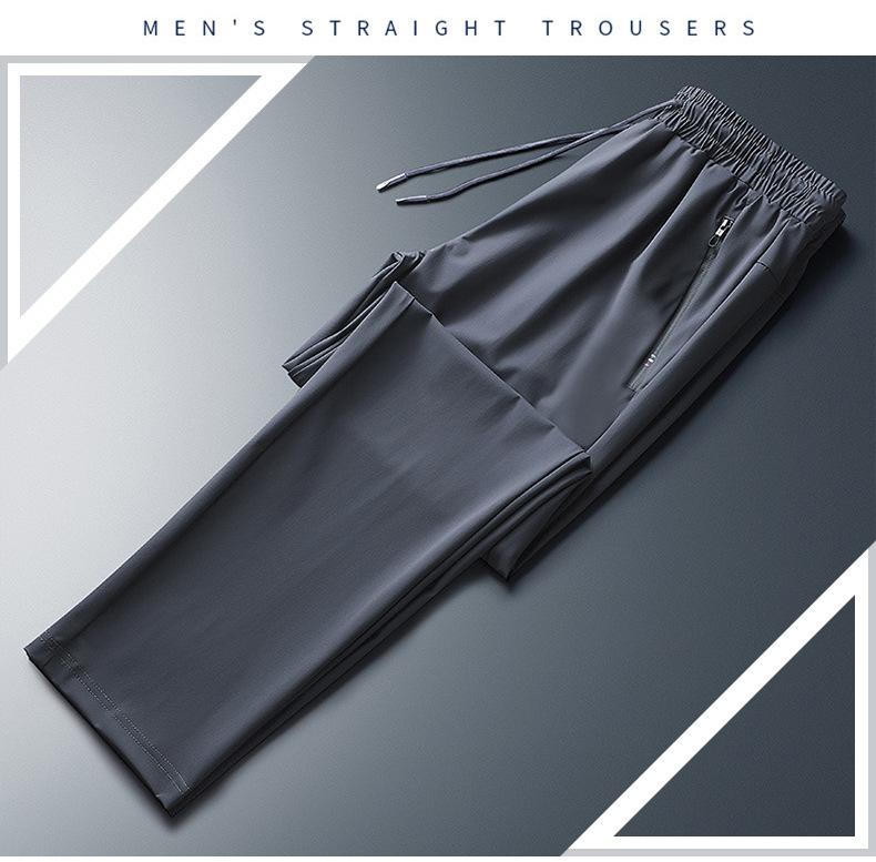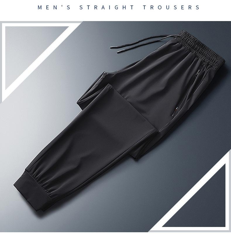 Pantalones deportivos para exteriores de verano para hombre, pantalones rectos y delgados de talla grande, pantalones casuales transpirables de seda de hielo elásticos con cordones en los tobillos para hombre