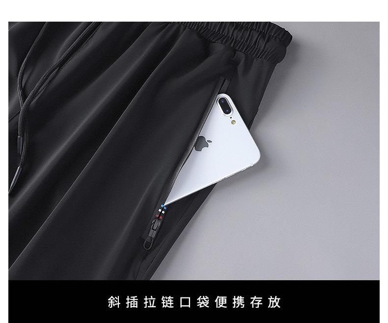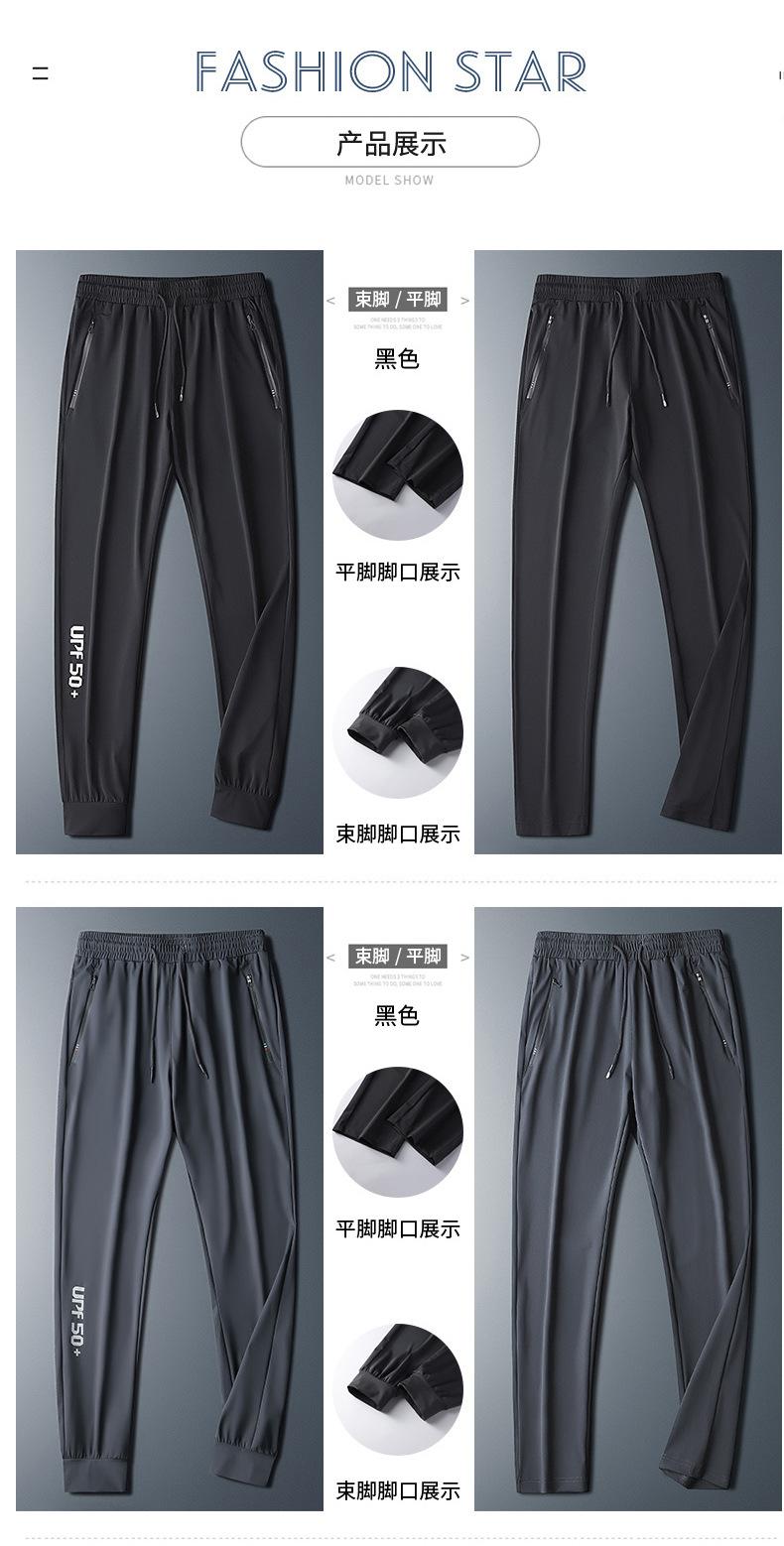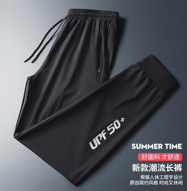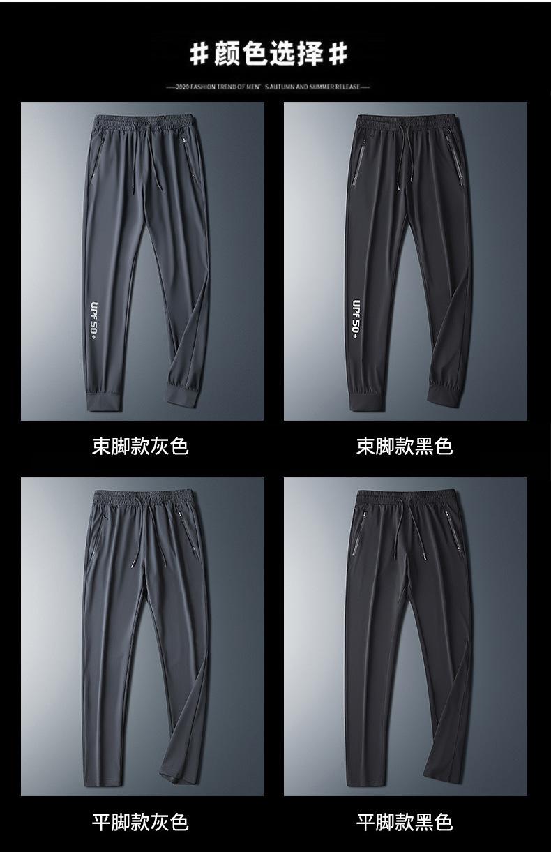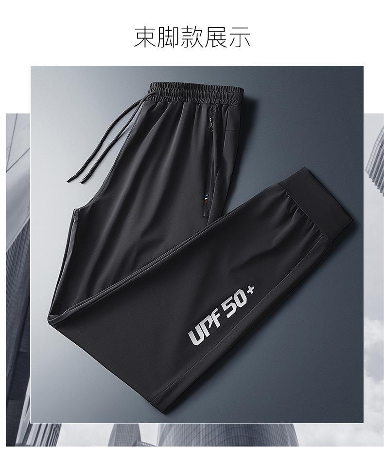 Pantalones deportivos para exteriores de verano para hombre, pantalones rectos y delgados de talla grande, pantalones casuales transpirables de seda de hielo elásticos con cordones en los tobillos para hombre