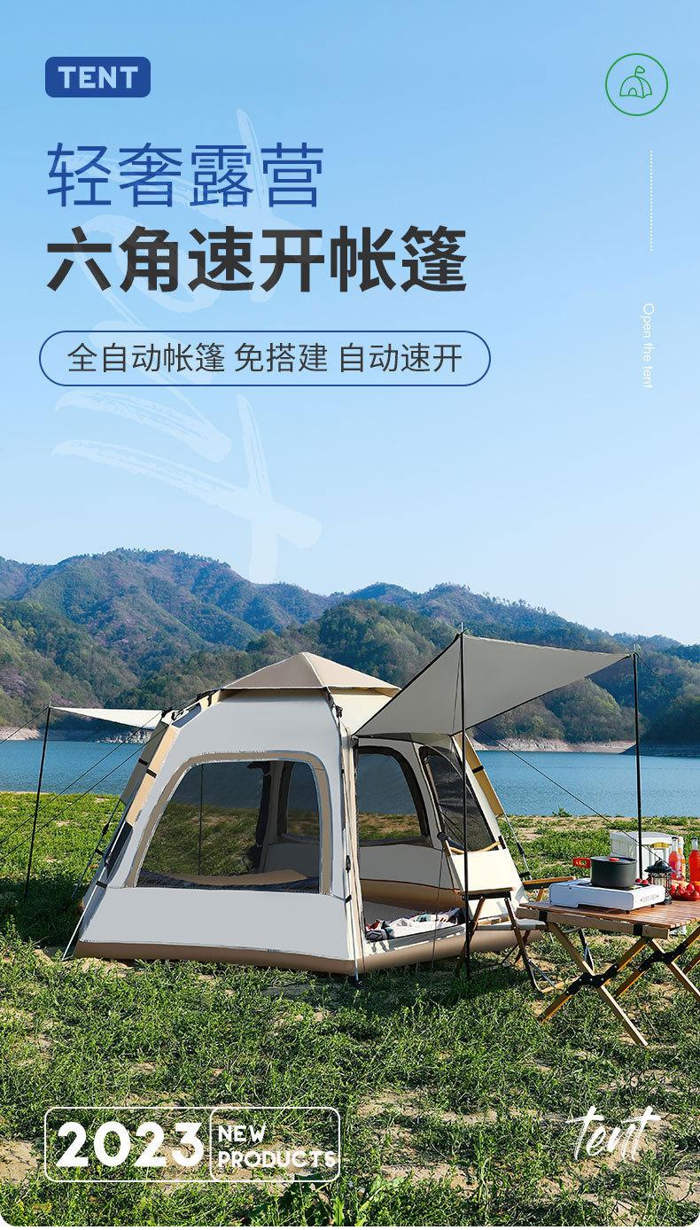 Cloud gray hexagonal tent (two doors and four windows), Dark green hexagonal tent (two doors and two windows),...