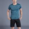 Traje de Fitness de Comercio Exterior para Hombre de Dos Piezas de Secado Rápido de Manga Corta Ropa Ajustada Ropa de Entrenamiento para Correr Deportes al Aire Libre Baloncesto