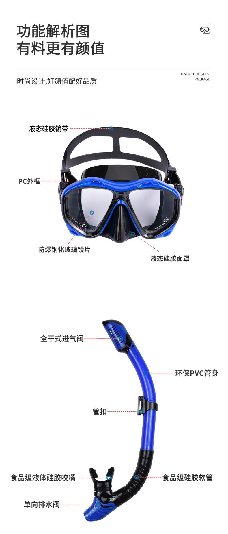 Traje de snorkel transfronterizo, máscara de buceo, tubo de respiración completamente seco, espejo de buceo, equipo de snorkel profesional en stock al por mayor