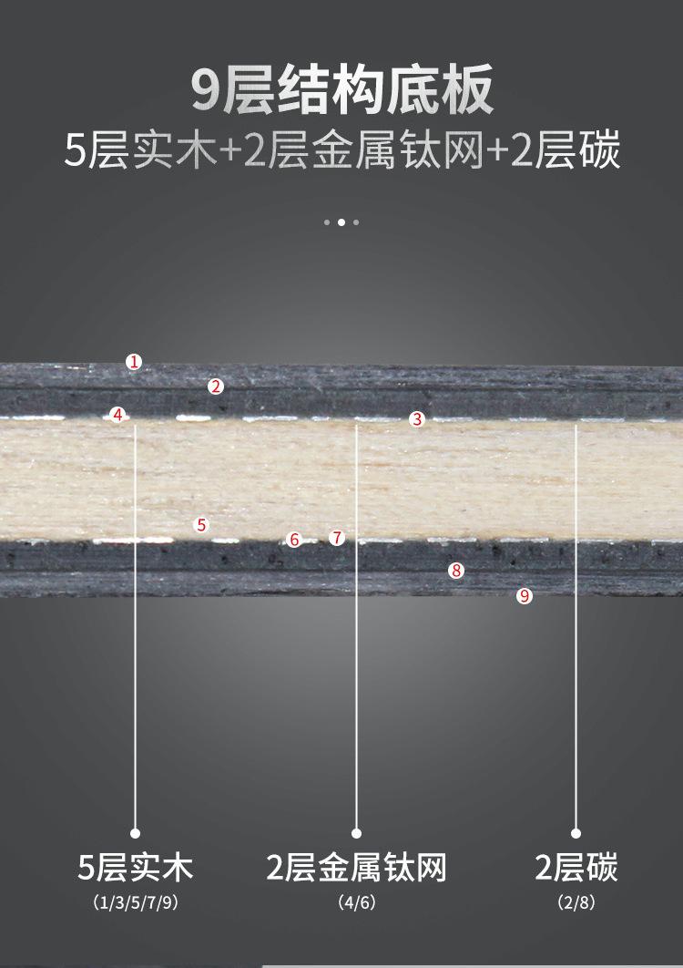 Placa base de raqueta de tenis de mesa, placa base de clapriot ofensiva profesional de fibra de carbono y titanio de 9 capas