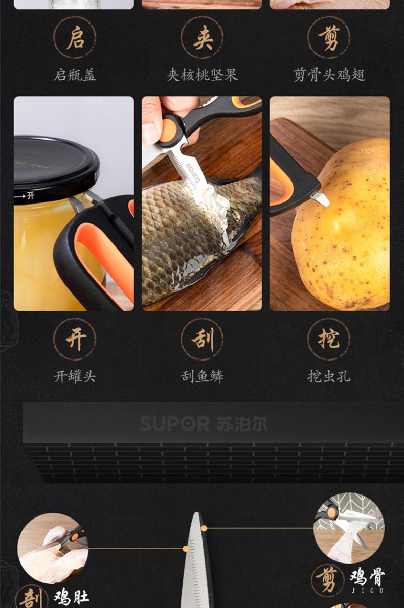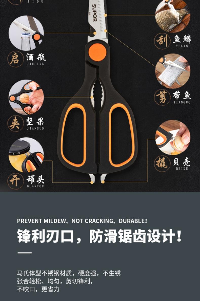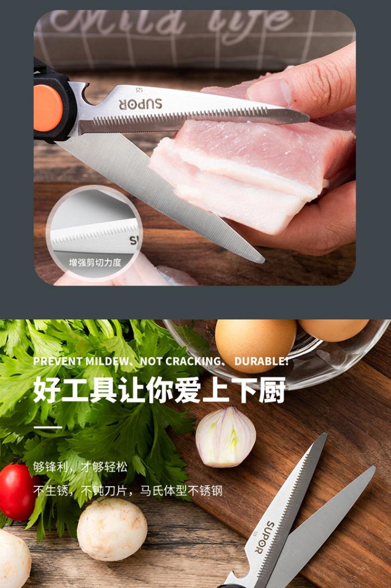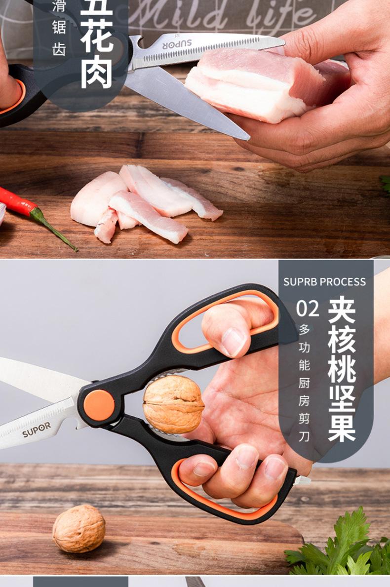 Tijeras de Cocina Supor Multifuncionales Tijeras para Barbacoa Tijeras Domésticas para Verduras y Alimentos Acero Inoxidable Tijeras para Huesos de Pollo Ke09B3
