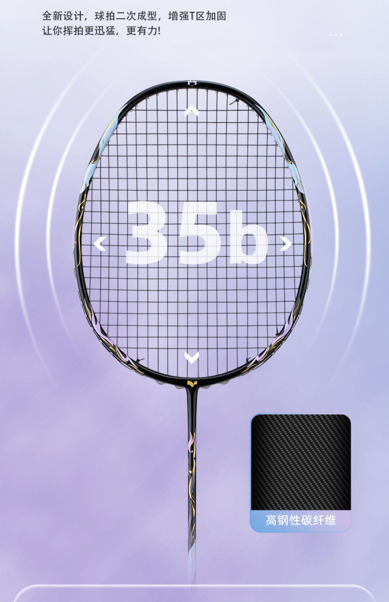 Raqueta de Bádminton Fibra de Carbono Completa 5U para Hombres y Mujeres Grado Profesional de Alto Libraje Raqueta Individual