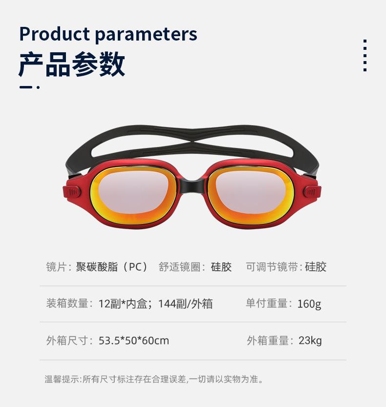 Gafas de natación profesionales antivaho de alta definición galvanizadas con grados Equipo de natación cómodo y no aprieta la cara Gafas de natación para adultos con miopía