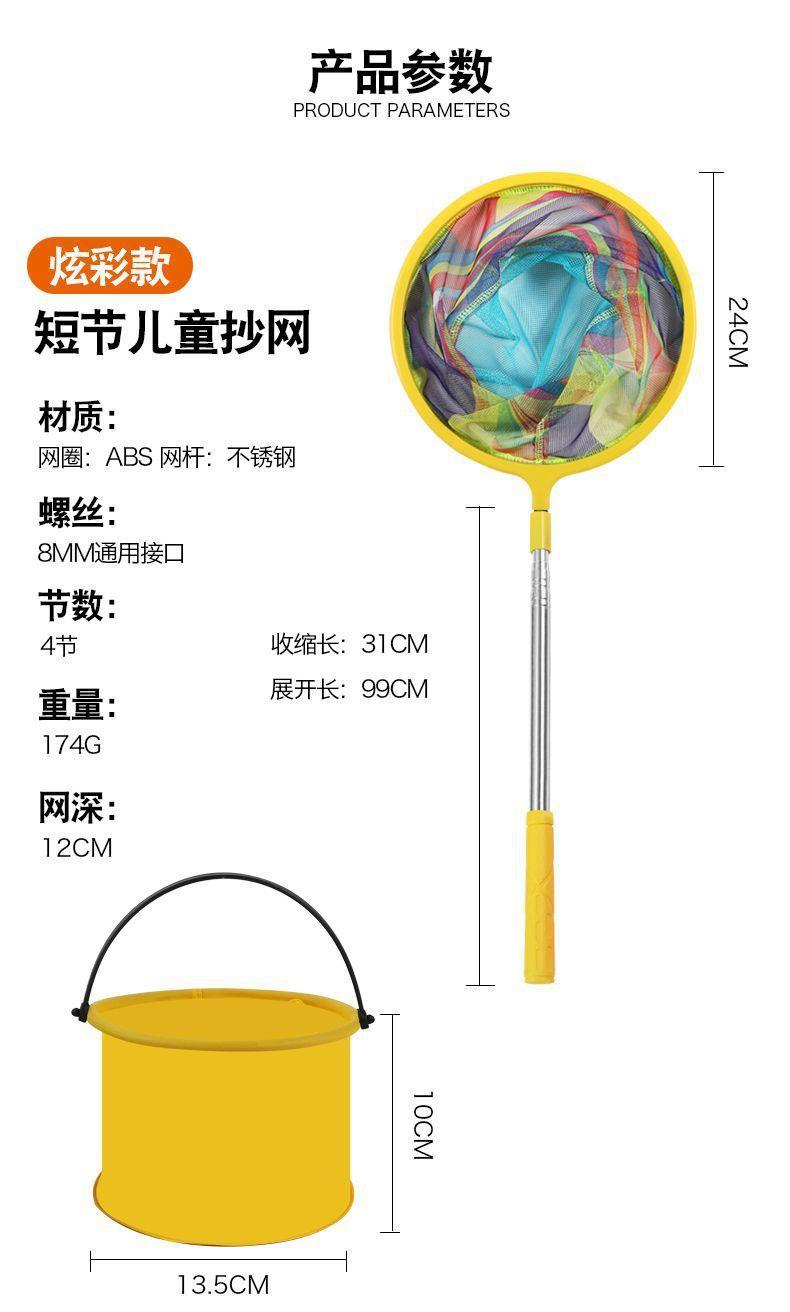 Mini four-section telescopic pole + mesh head [vibrant blue], Mini four-section telescopic pole + mesh head [s...