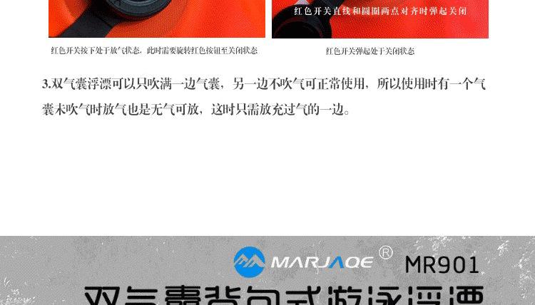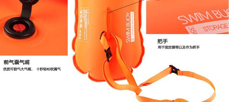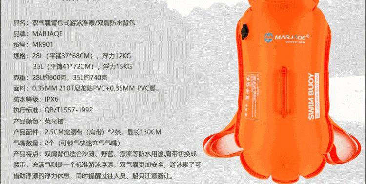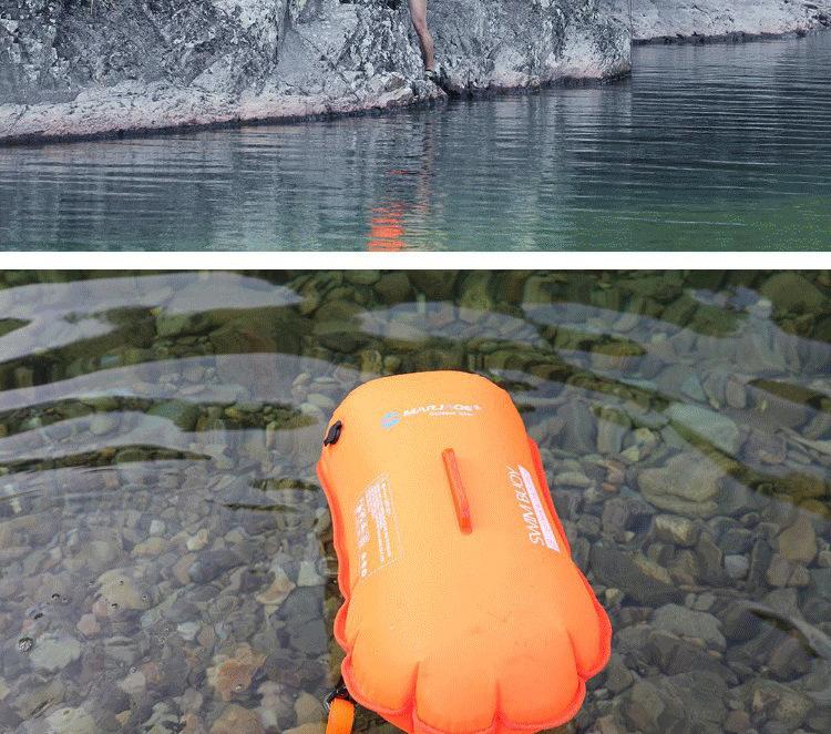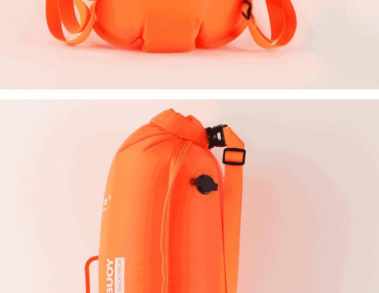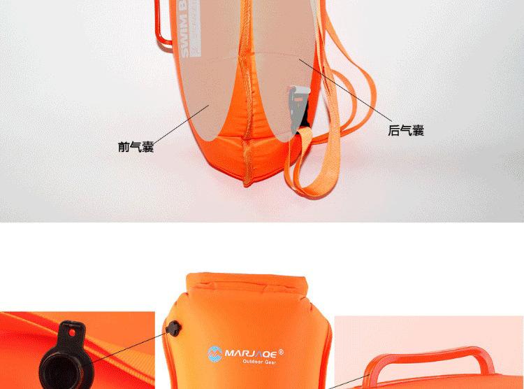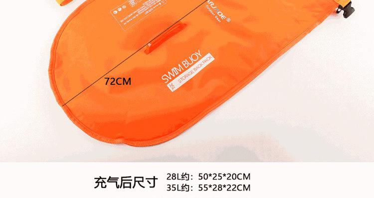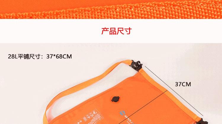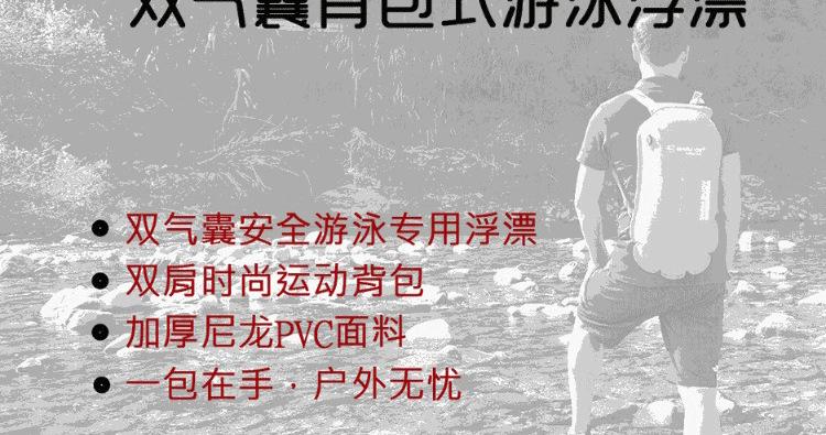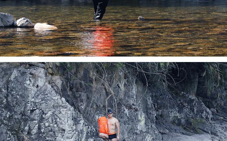Características del producto: La mochila es adecuada para propósitos impermeables como playas, campamentos y rafting. La correa para el hombro se convierte en un cinturón de cintura, y cuando se infla, se convierte en un flotador de natación estándar. Las bolsas de aire dobles son más seguras. Cuando estás cansado de nadar, puedes usar la flotabilidad del flotador para descansar, y al mismo tiempo recordar a las personas y barcos que pasan que lo eviten.