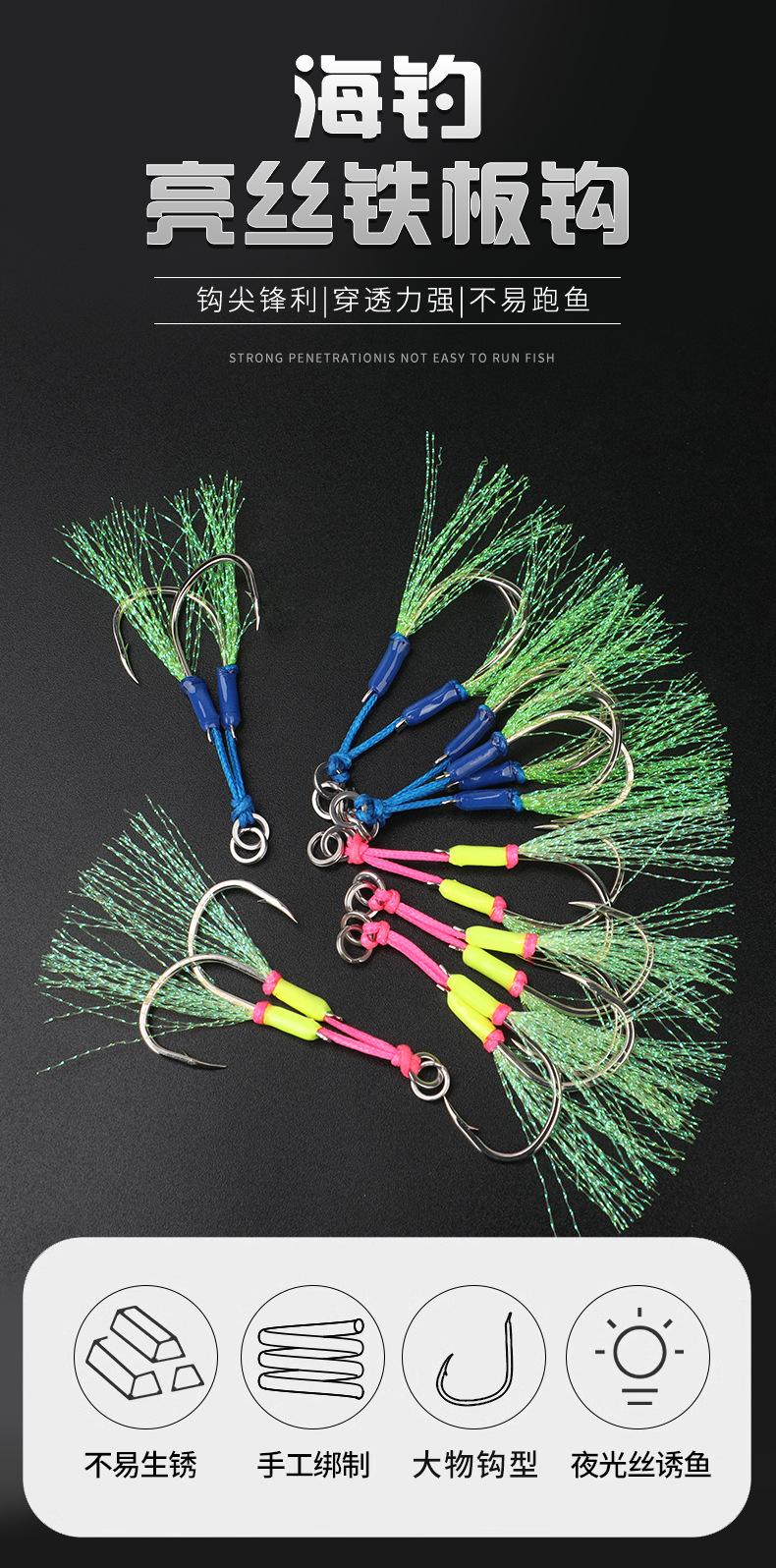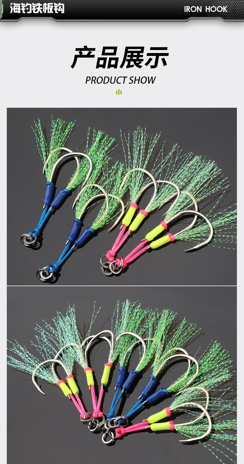 Pesca Marítima Iseni Slow Rocking Jig Gancho Doble Gancho Pesca de Embarcación Acero al Carbono Reforzado Gancho Doble