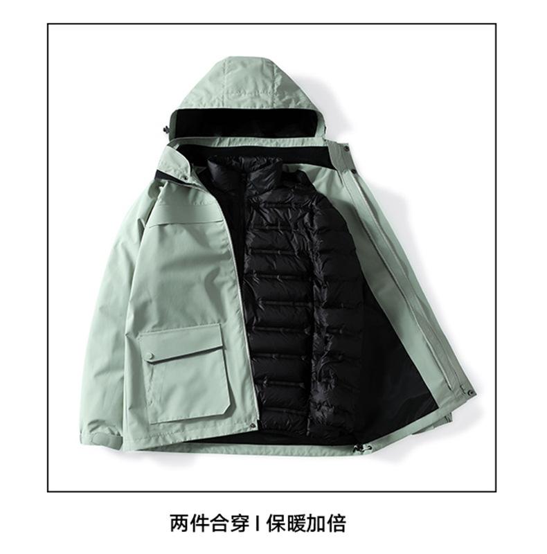 Chaqueta Cortavientos Impermeable Desmontable Dos Piezas Tres en Uno de Invierno para Hombre Traje de Escalada para Mujer con Forro Polar para Exteriores