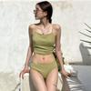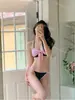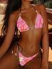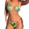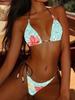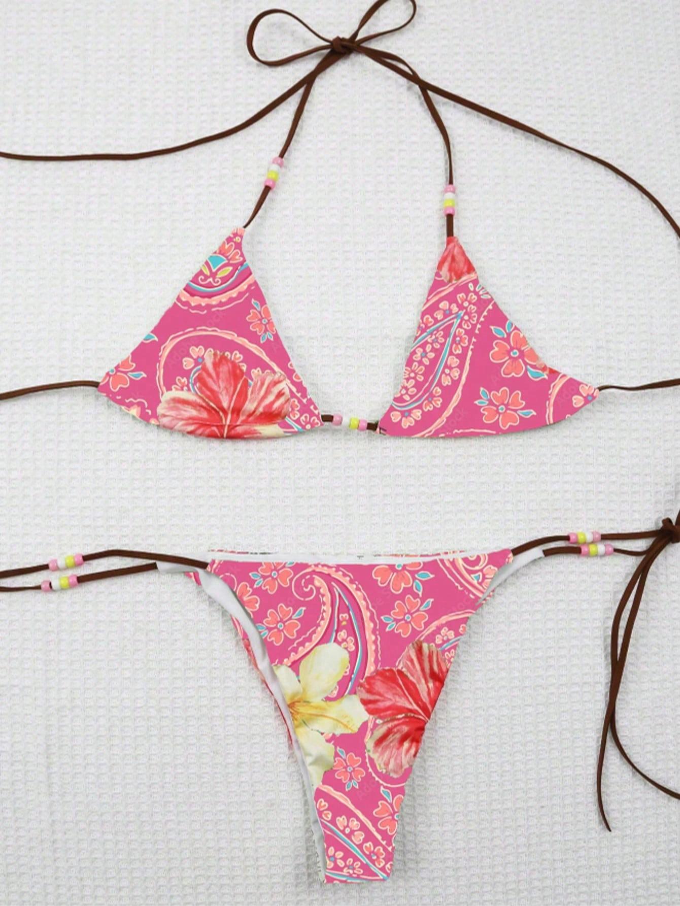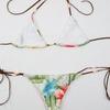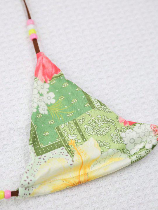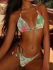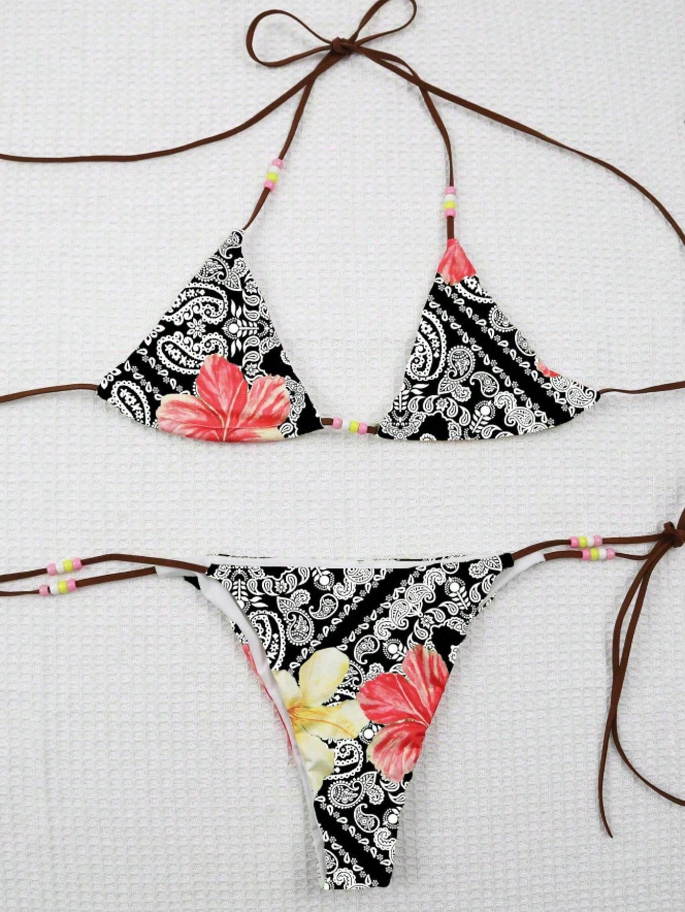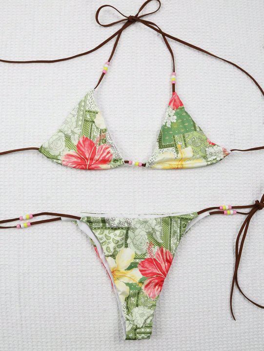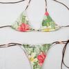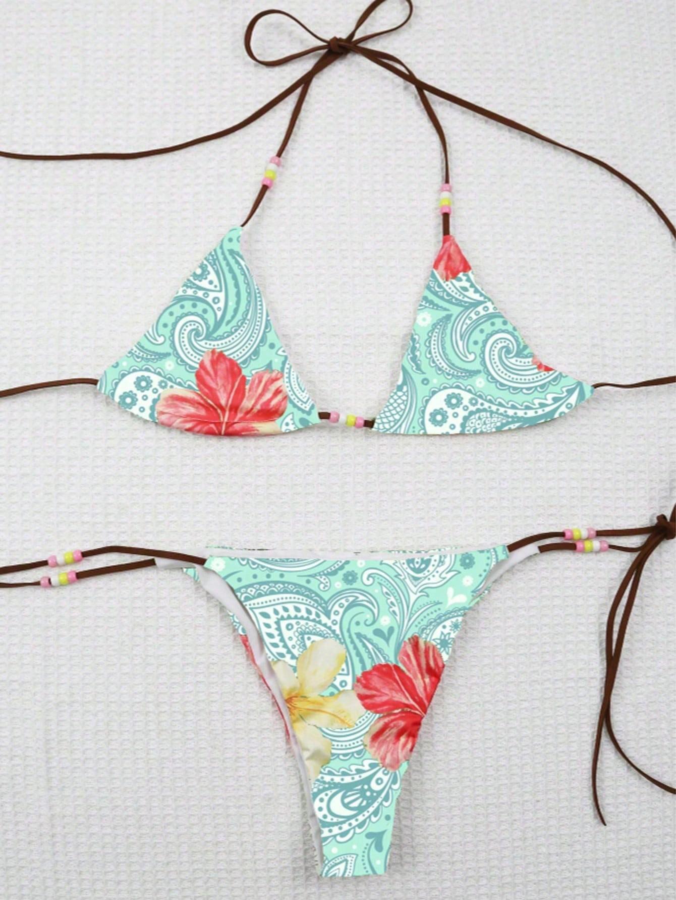Traje de Baño Dividido de Exportación Europeo y Americano Estampado Floral Colorido Abalorios Empalmados Bikini Triángulo con Halter de Encaje con Cordones