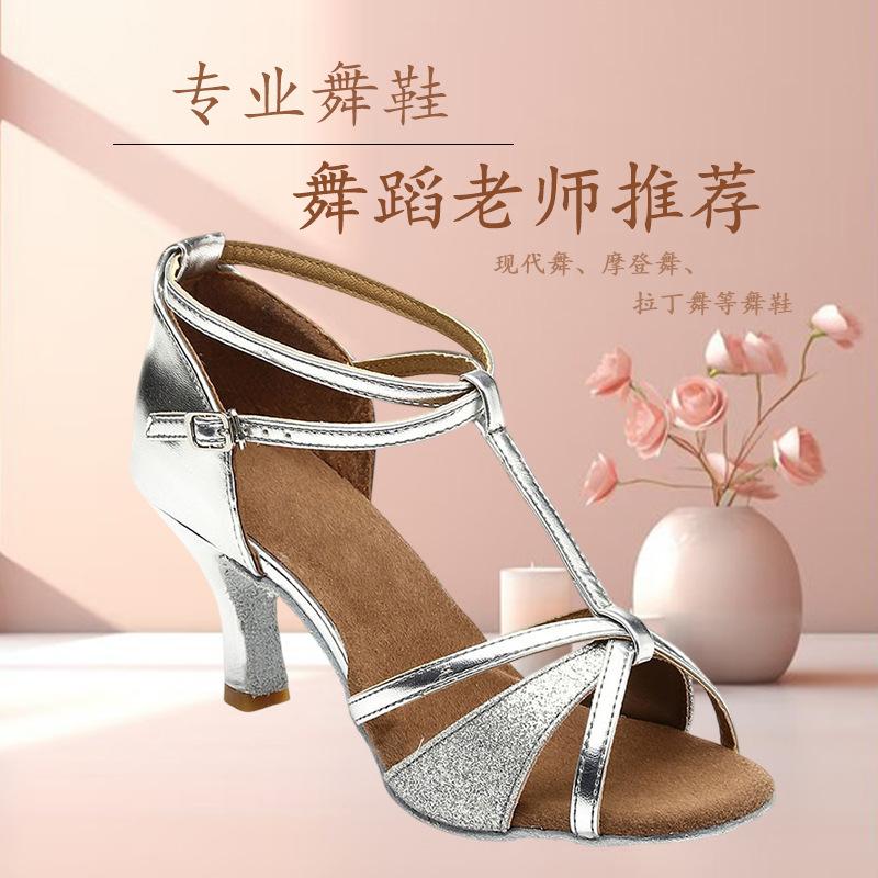 Zapatos de baile profesionales de suela blanda plateados para mujer, zapatos de baile latino de verano 2025, zapatos de baile cuadrados profesionales para adultos, venta al por mayor transfronteriza