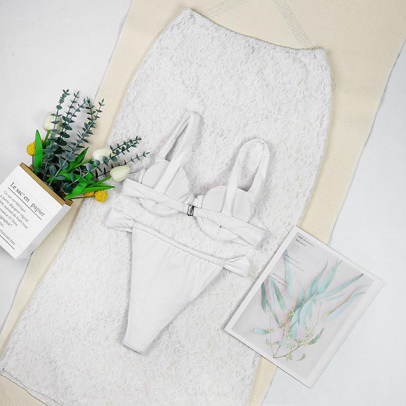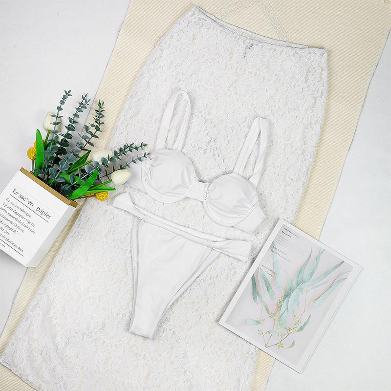 2025 Nuevo Bikini Bikini Europeo y Americano Encaje Sexy Transfronterizo Dividido Traje de Baño para Mujer Traje de Baño Conjunto de Tres Piezas para Mujer