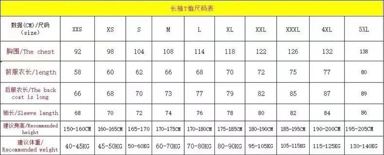 XS, S, M, L, XL, XXL, XXXL, 4XL, 5XL