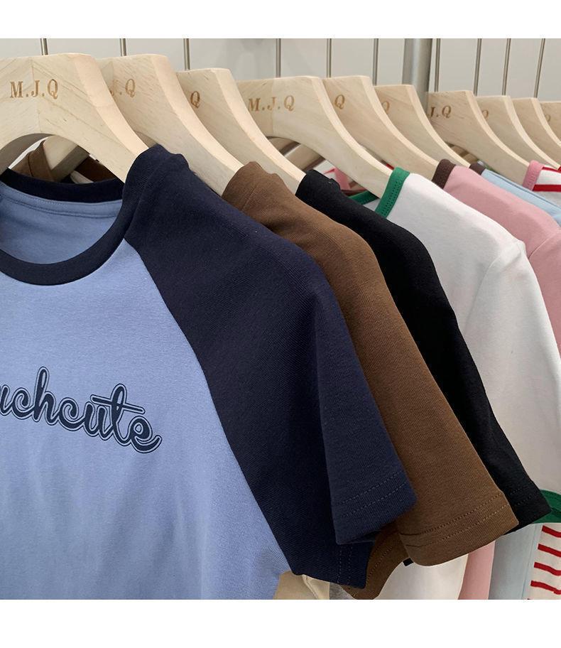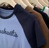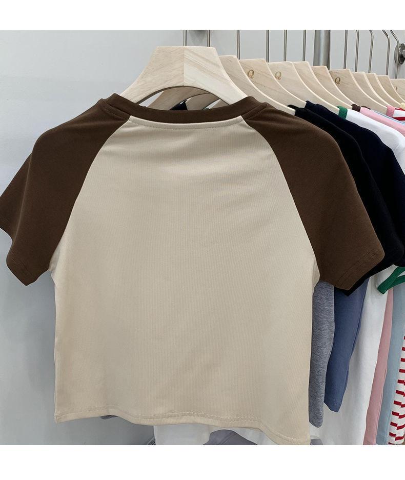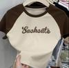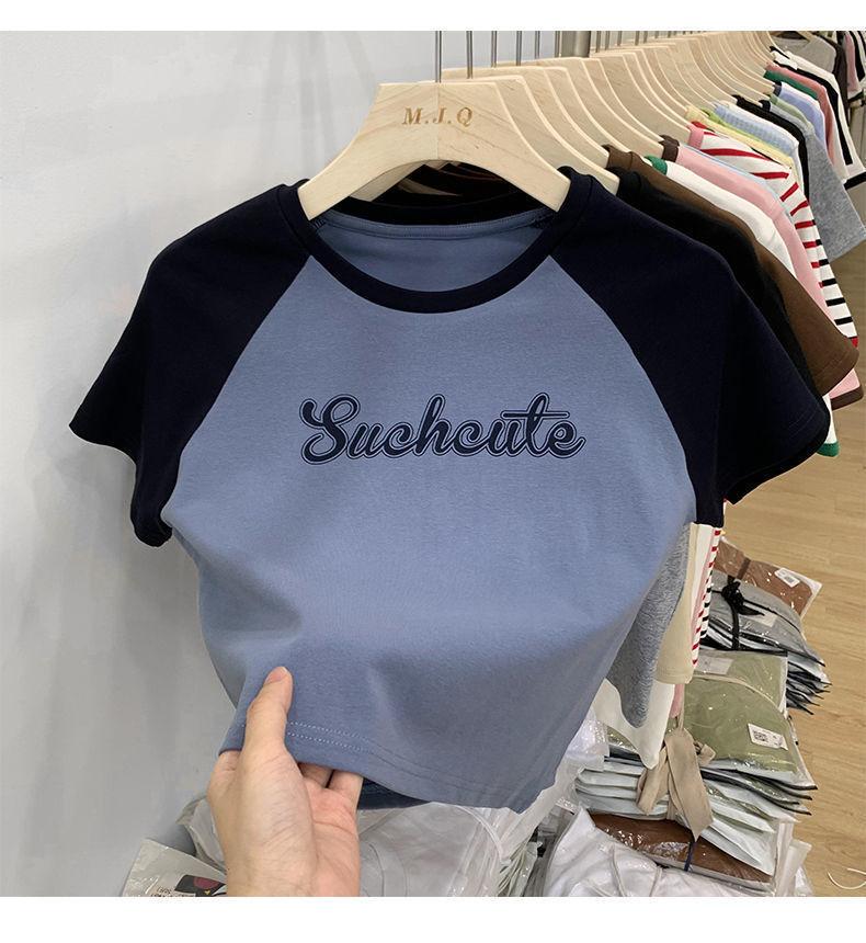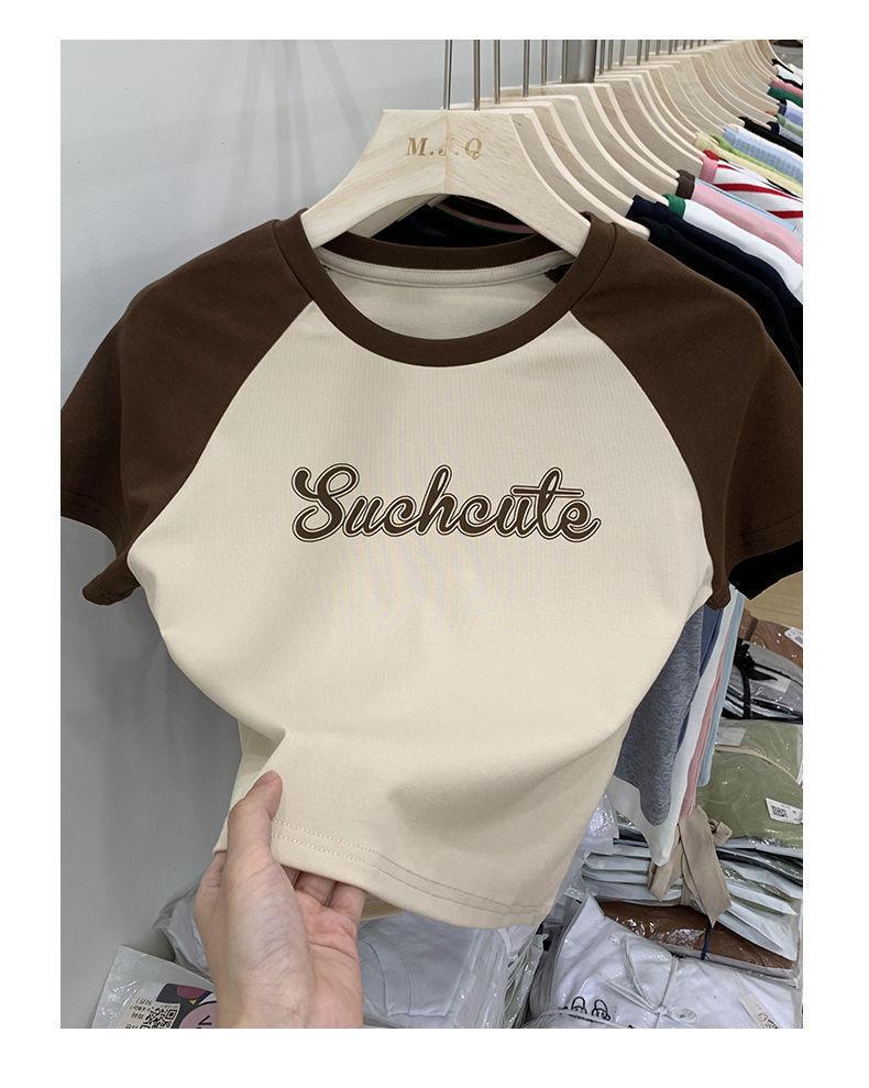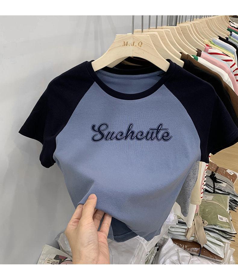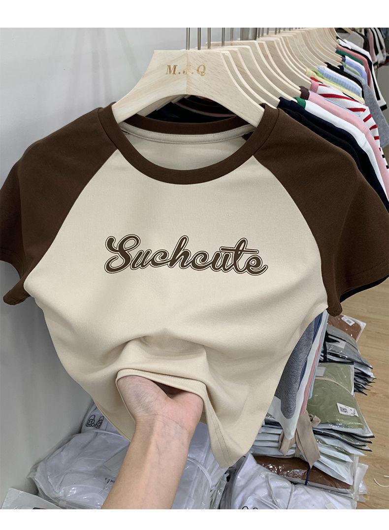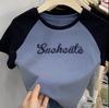 Camiseta de manga larga con letras de chica caliente americana para mujer, manga raglán, combinación de colores, corta para usar debajo, jersey de cuello redondo, top de comercio exterior al por mayor