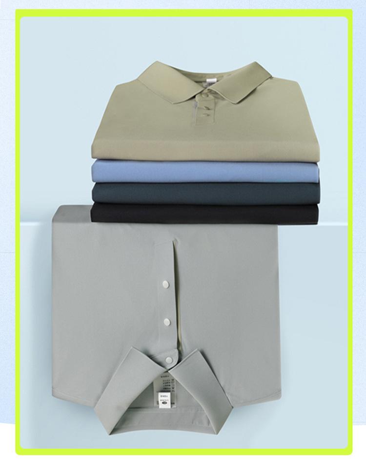 Camiseta de Solapa Casual de Negocios de Verano Manga Corta Seda de Hielo Sensación Fresca Ligera Absorción de Sudor Humedad Moderna Suelta Camisa Polo