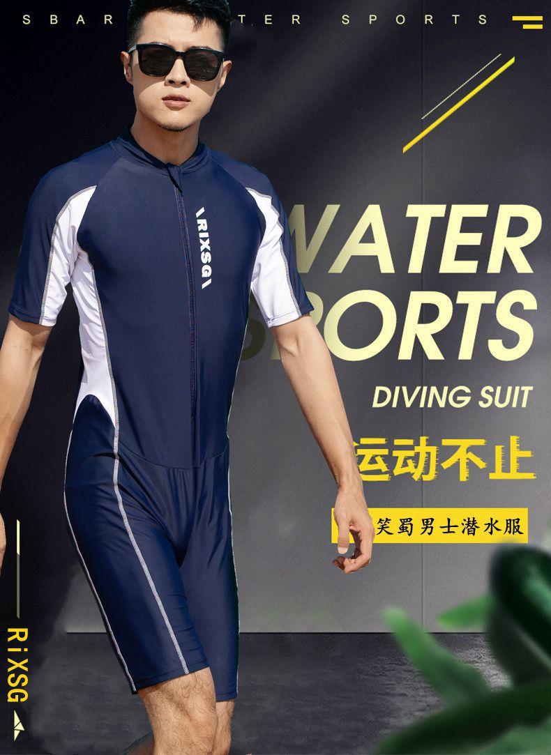 Fabricante Traje de Buceo para Hombre Traje de Baño de Una Pieza con Jersey Pantalón Cinco Puntos de Manga Corta Traje de Snorkel Entrenamiento en Piscina Ajustado de Una Pieza