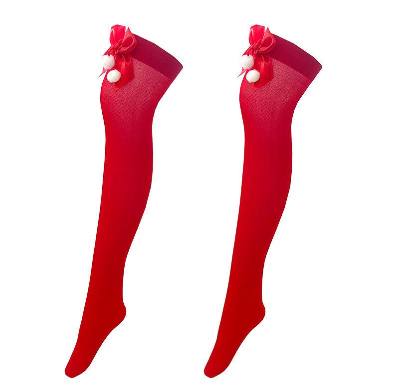 Calcetines navideños rojos hasta la rodilla medias para adulto lazo medias sexys accesorios cosplay lolita