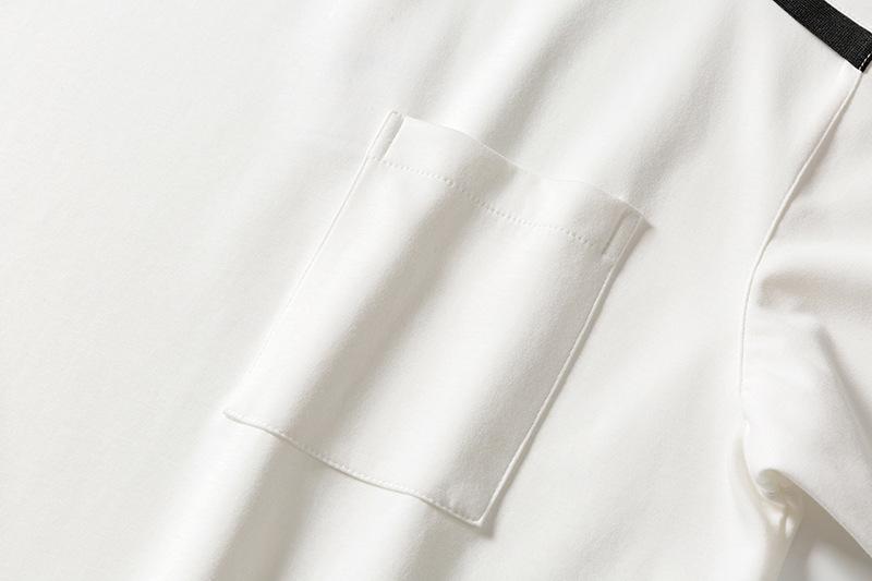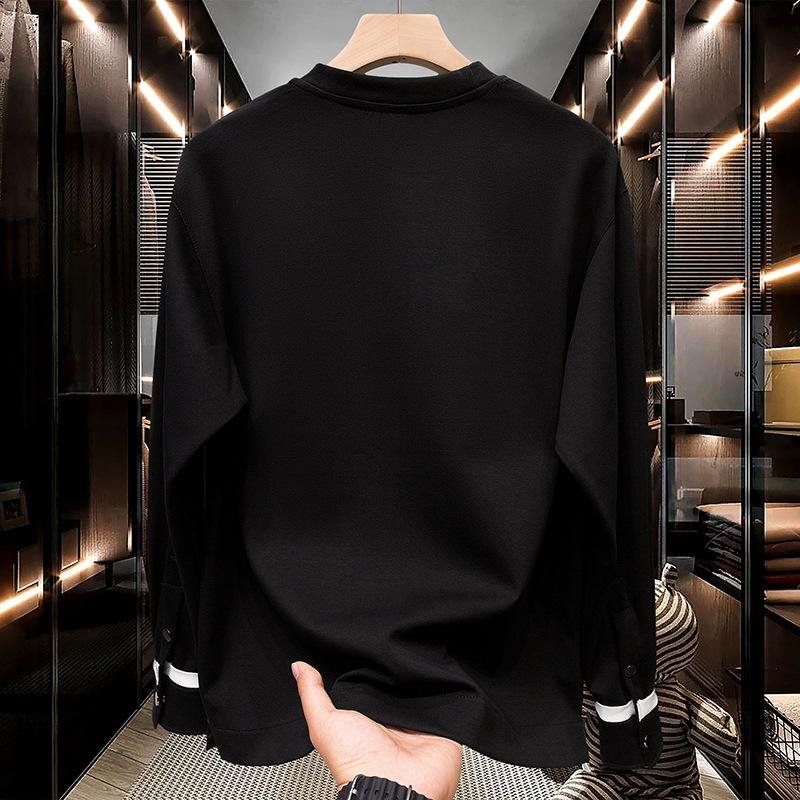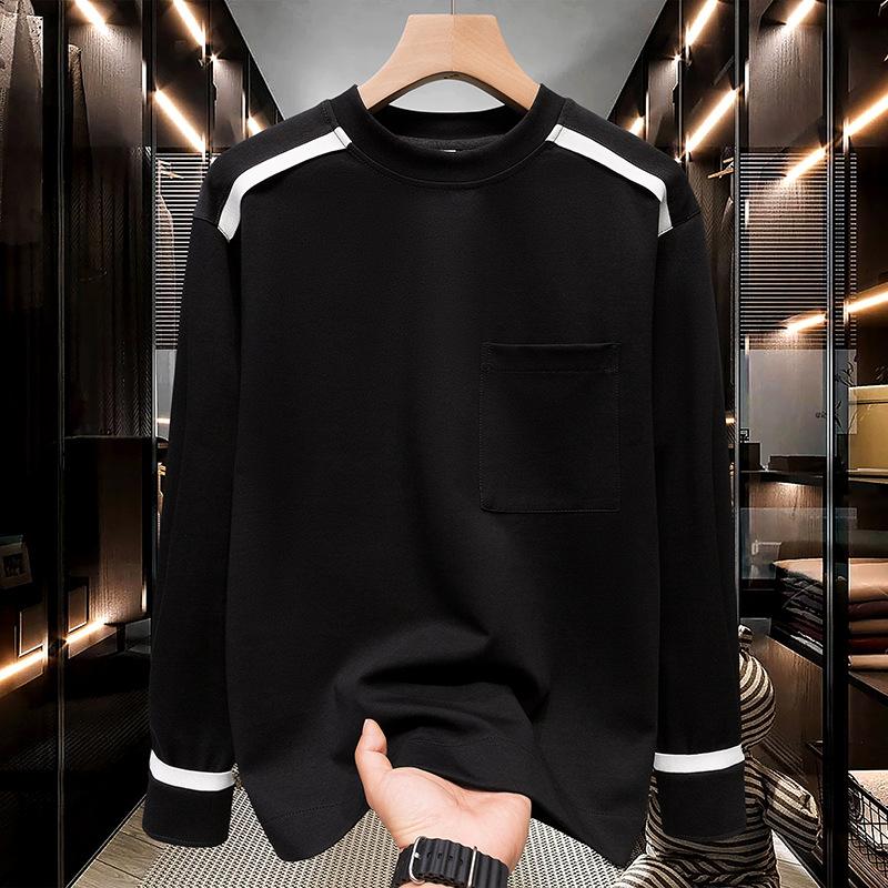 Camiseta de manga larga con cuello redondo y contraste de color de alta calidad para hombre, nueva camiseta drapeada ligera de lujo para primavera y otoño, camiseta de marca de moda.