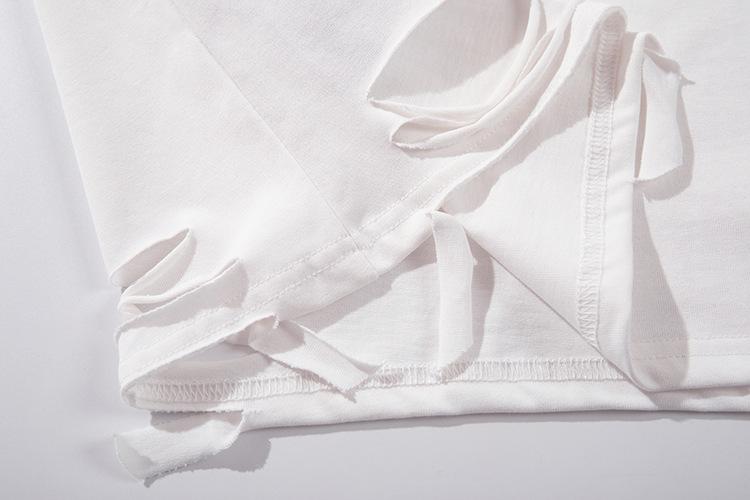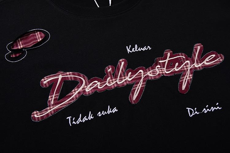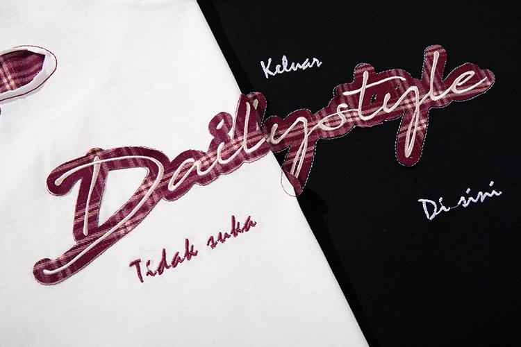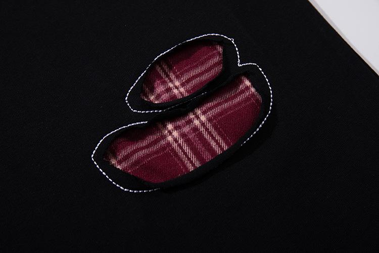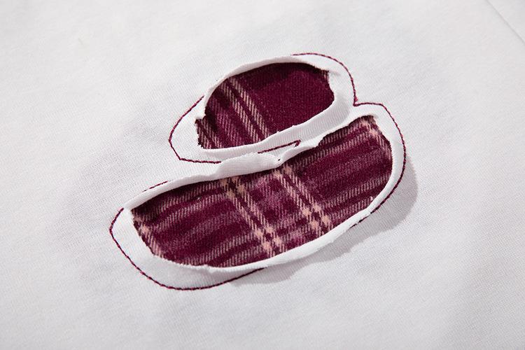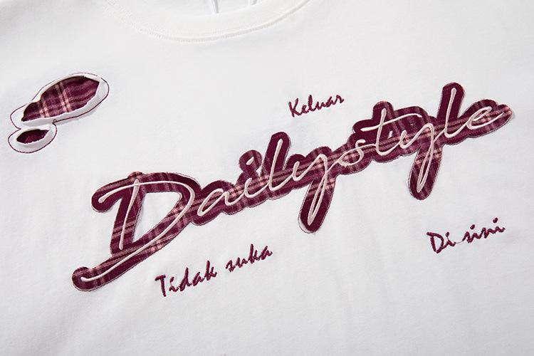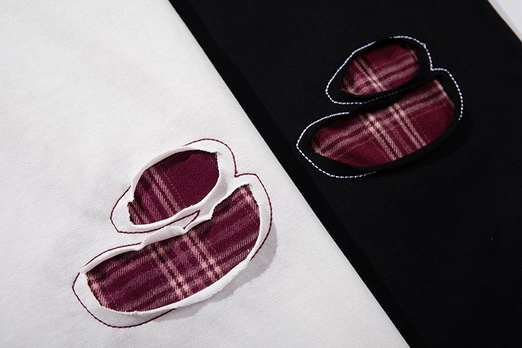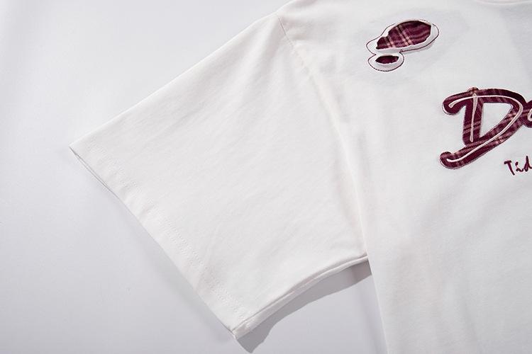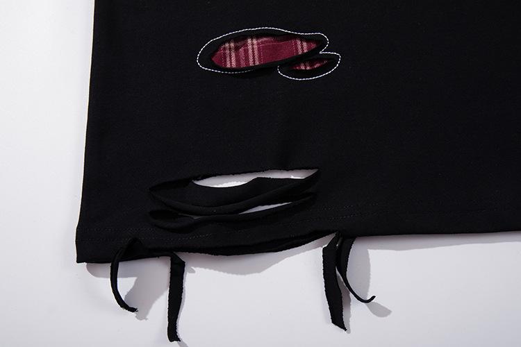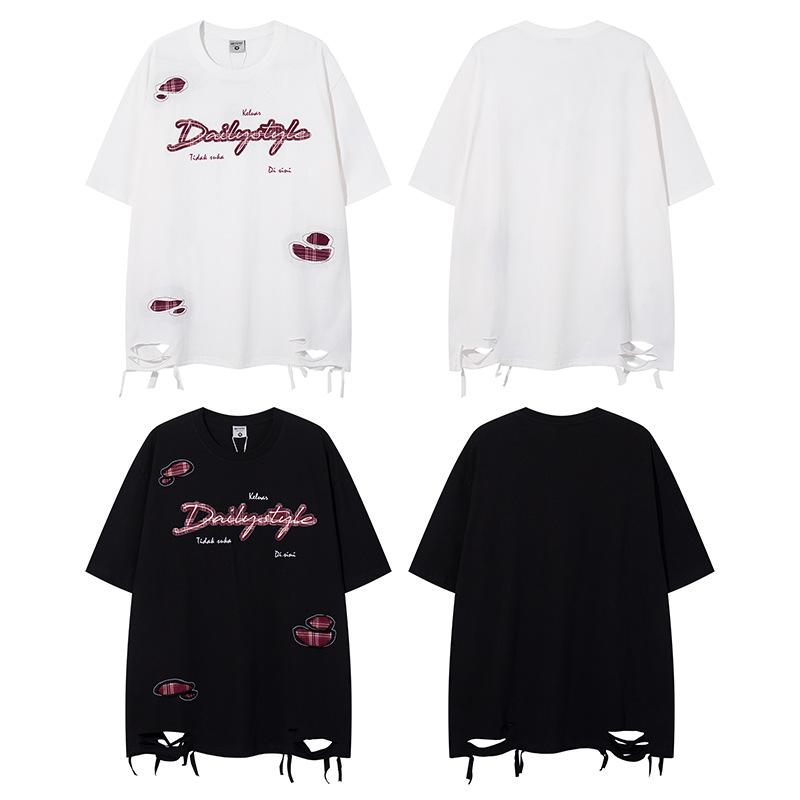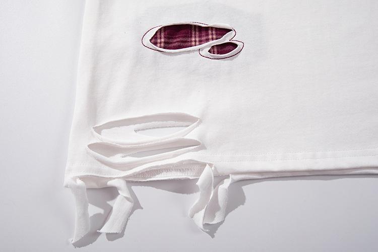 Camiseta de manga corta con parche y diseño roto a cuadros de moda europea y americana para hombre y mujer.