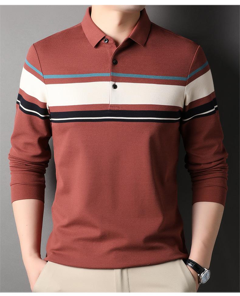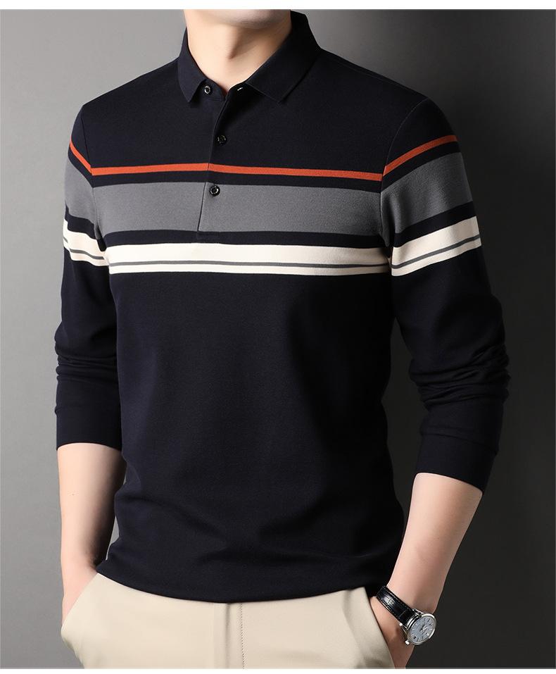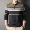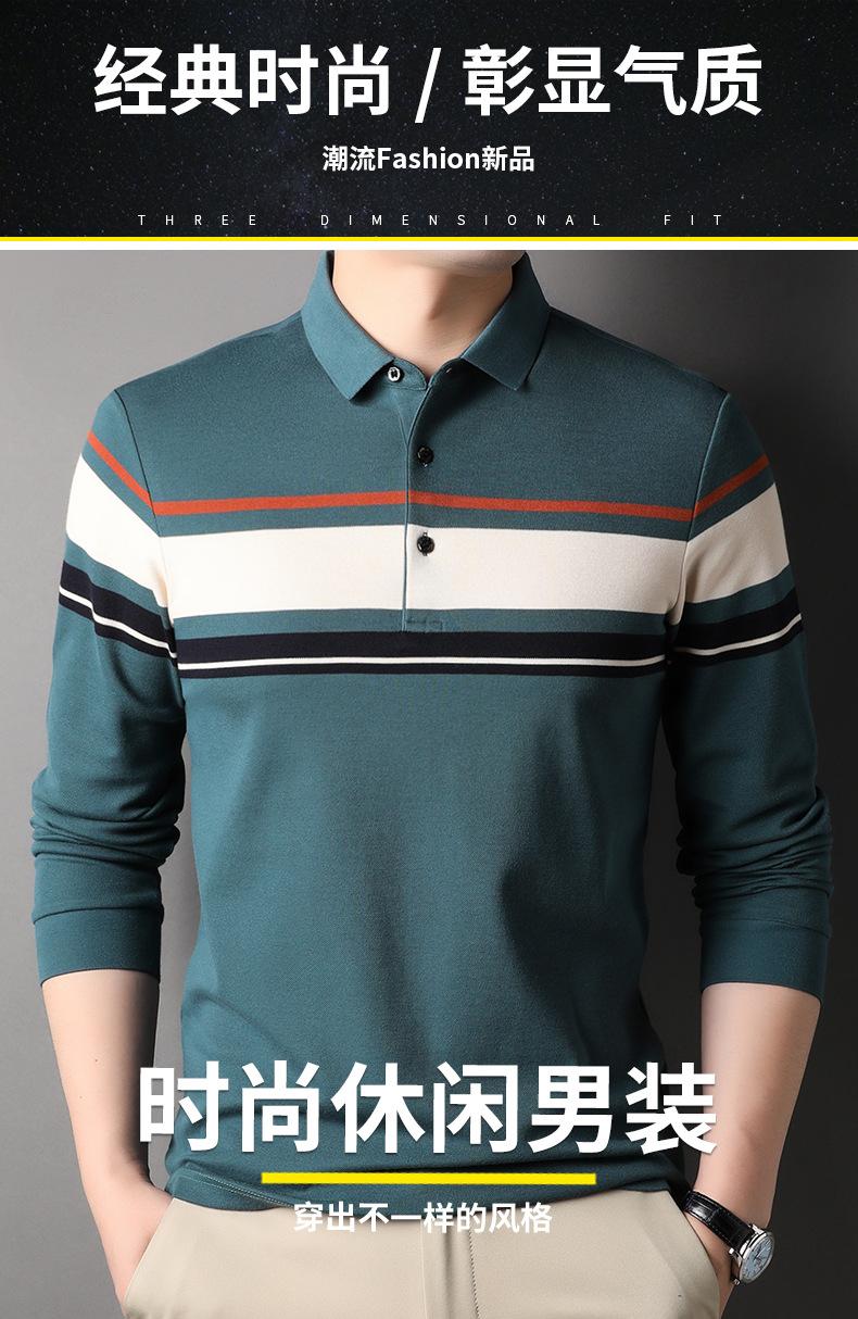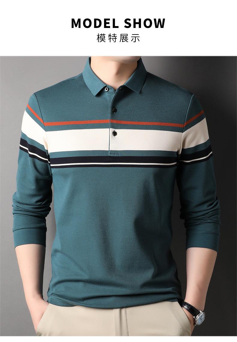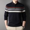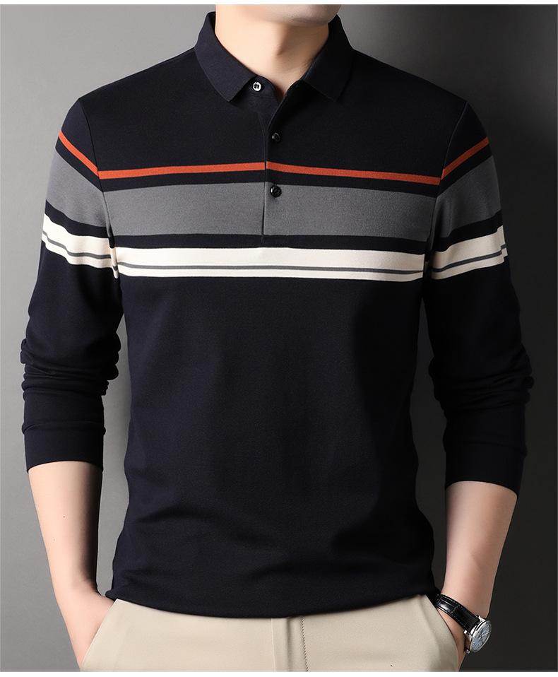Camiseta de manga larga para hombre, estilo informal de negocios, de mediana edad, a rayas, para papá, de primavera y otoño, a la moda.
