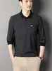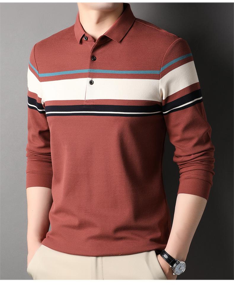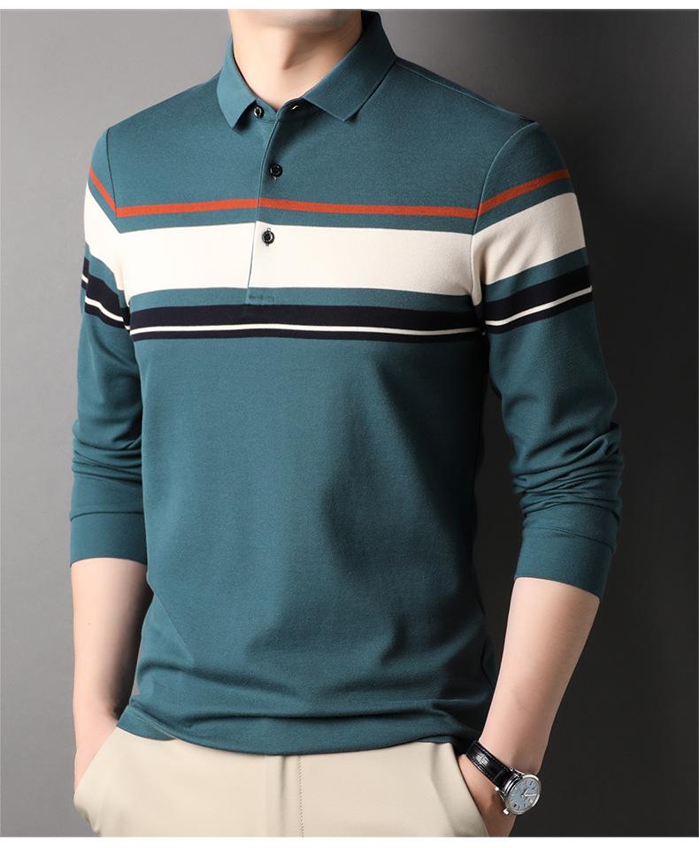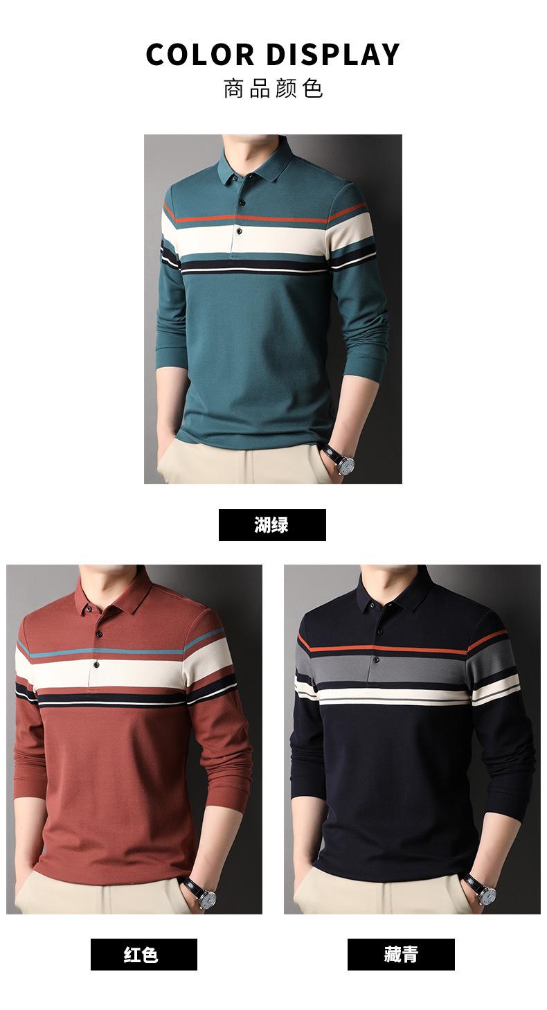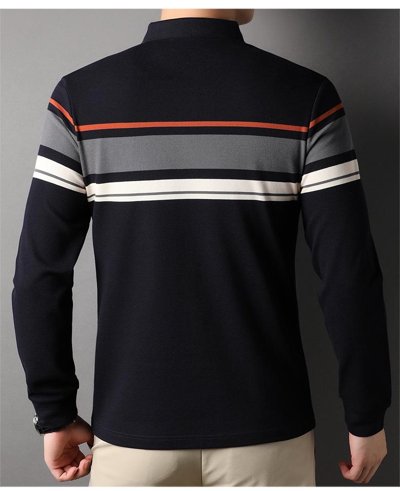 Camiseta de manga larga para hombre, estilo informal de negocios, de mediana edad, a rayas, para papá, de primavera y otoño, a la moda.