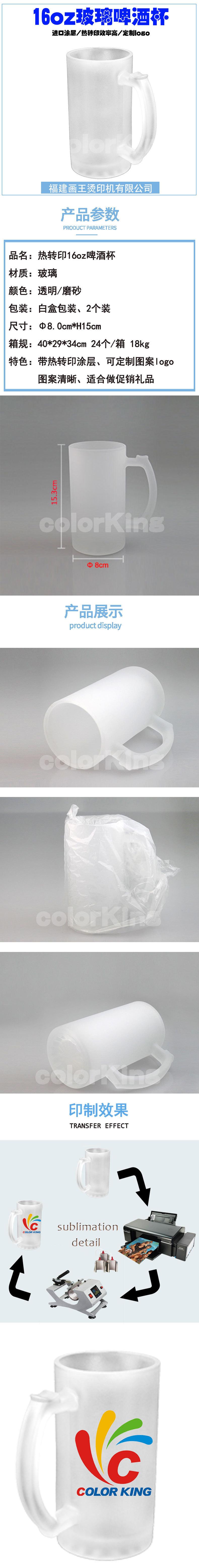 Taza de Cerveza de Vidrio Esmerilado de 16 oz Puede Sublimar Personalizado DIY Taza de Cerveza de Vidrio de Gran Capacidad