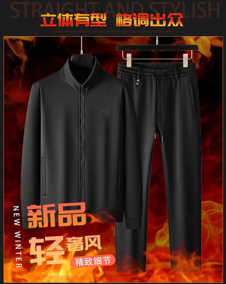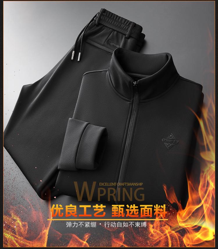 Traje Casual Grueso de Invierno para Hombre de Alta Calidad con Forro Polar, Conjunto de Dos Piezas de Chaqueta y Pantalón de Ropa Deportiva para Hombre 09