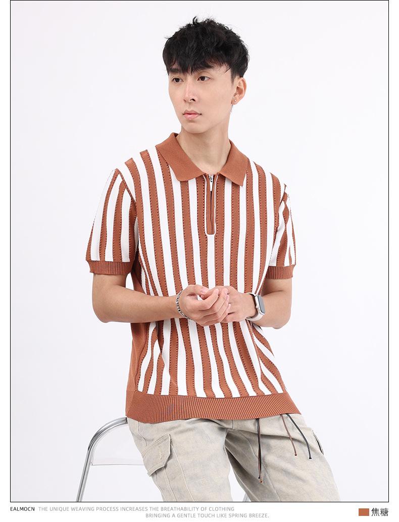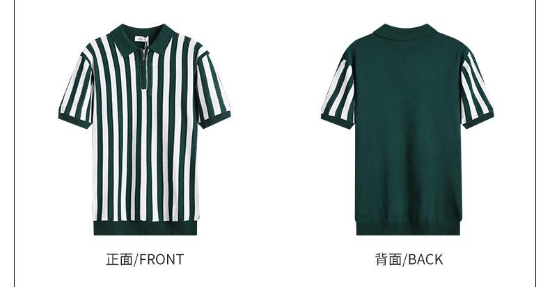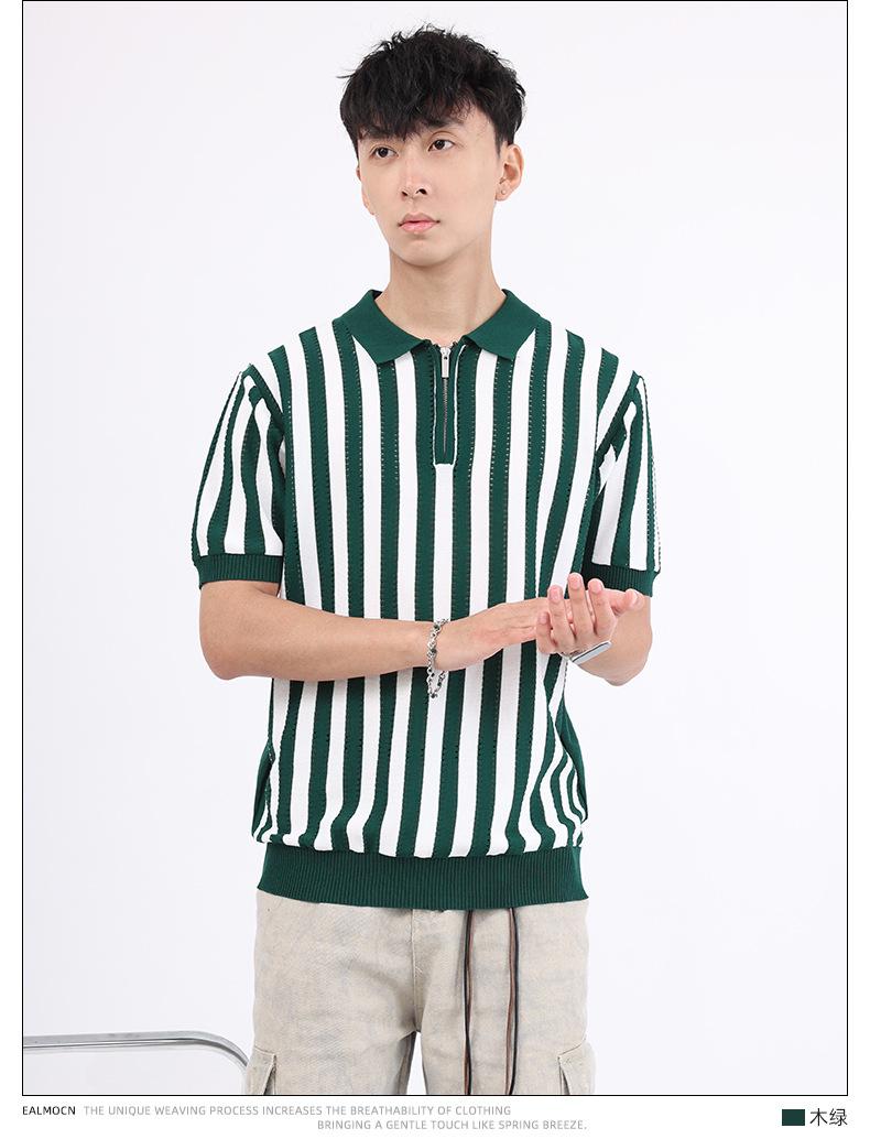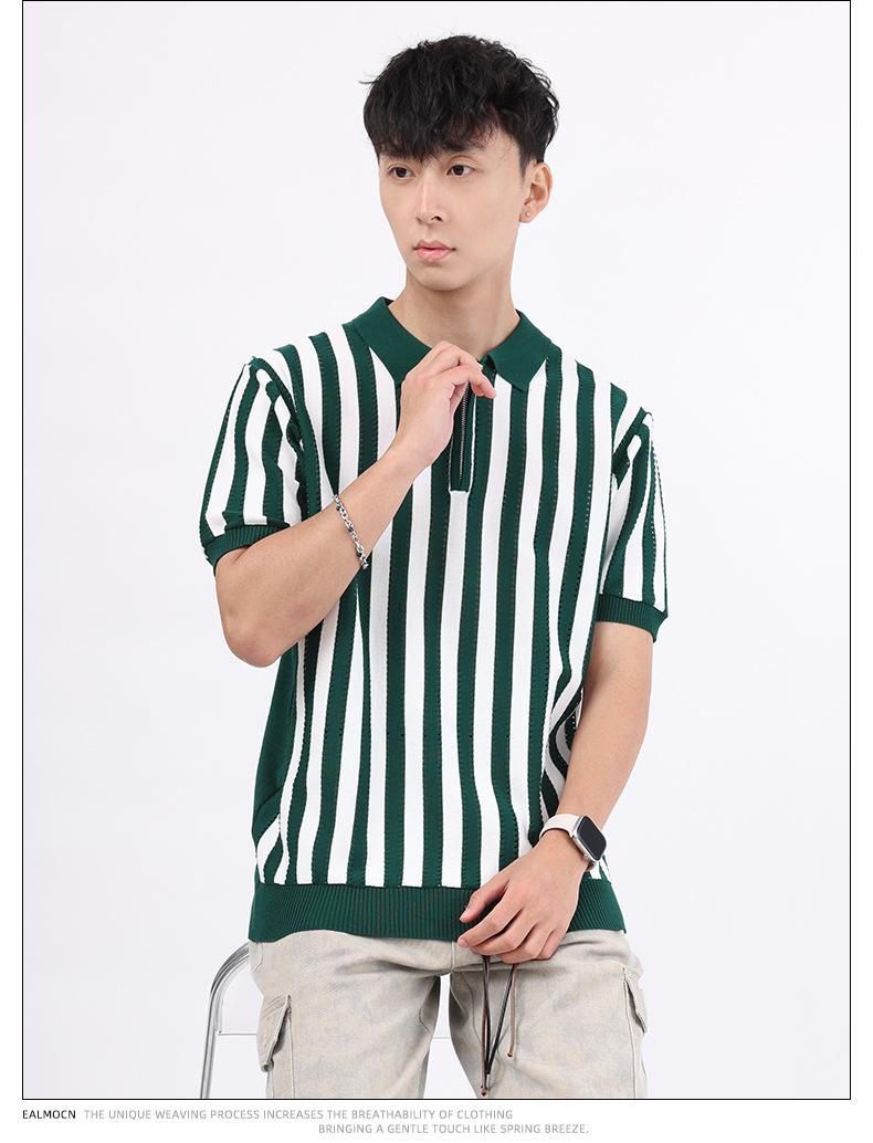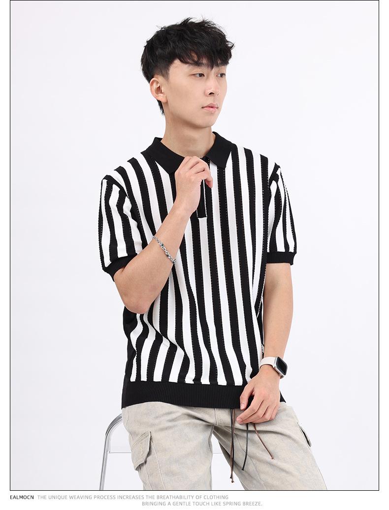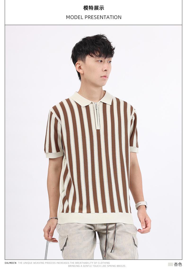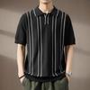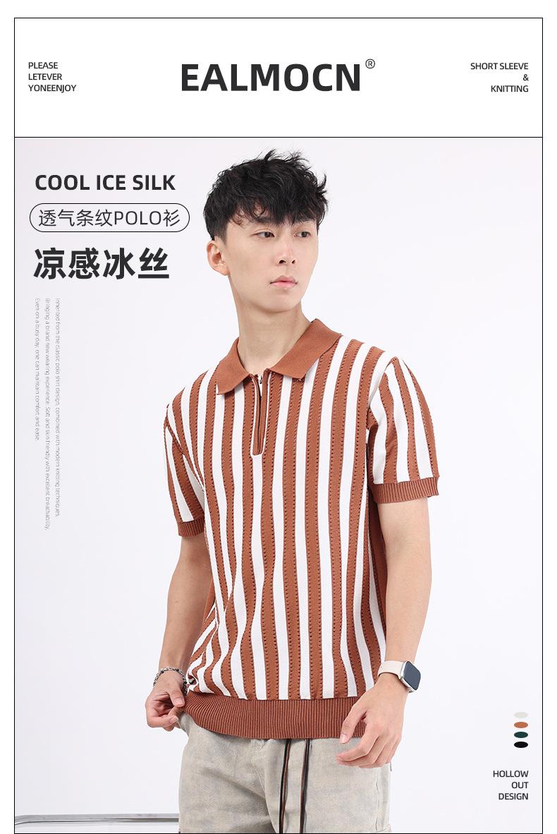 Polo de Seda de Hielo de Manga Corta para Hombre Sensación de Alta Gama Camiseta de Rayas para Hombre Verano Estilo Americano Casual de Negocios Paul