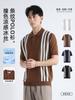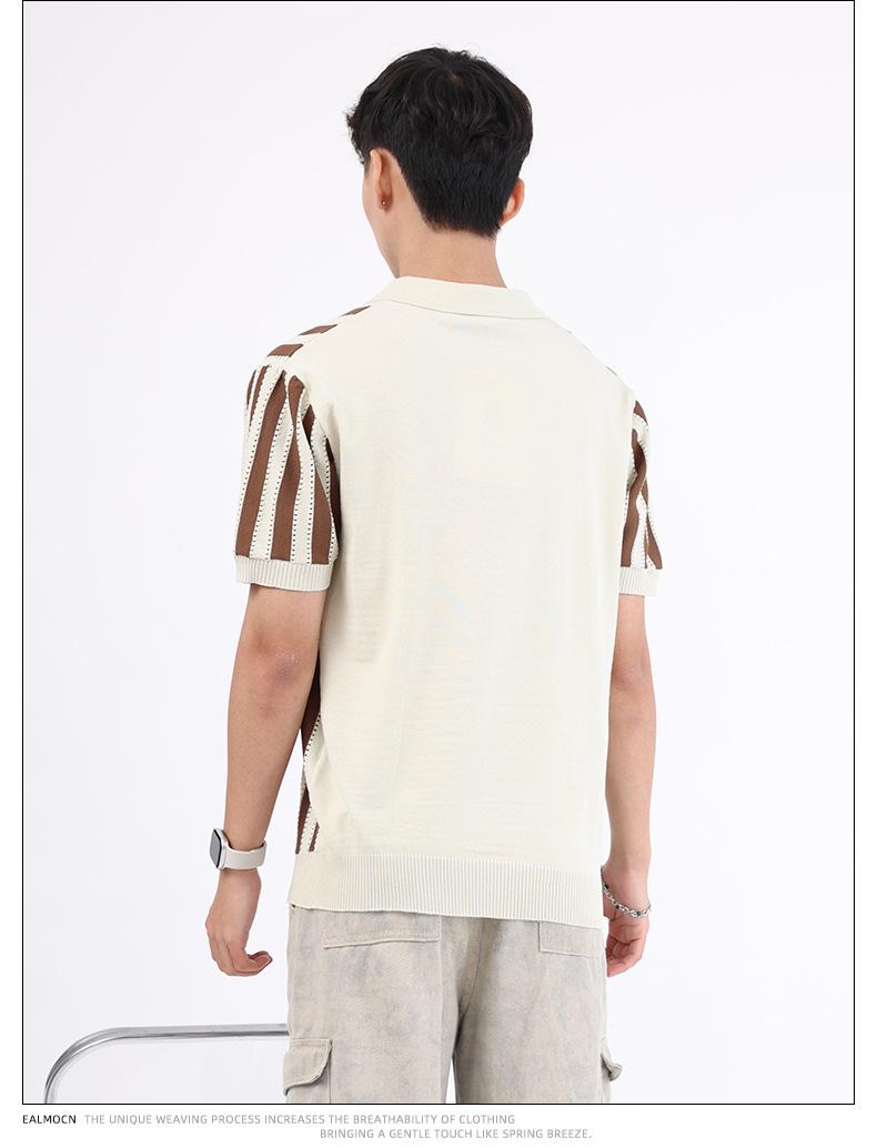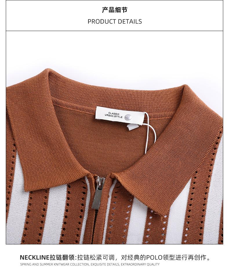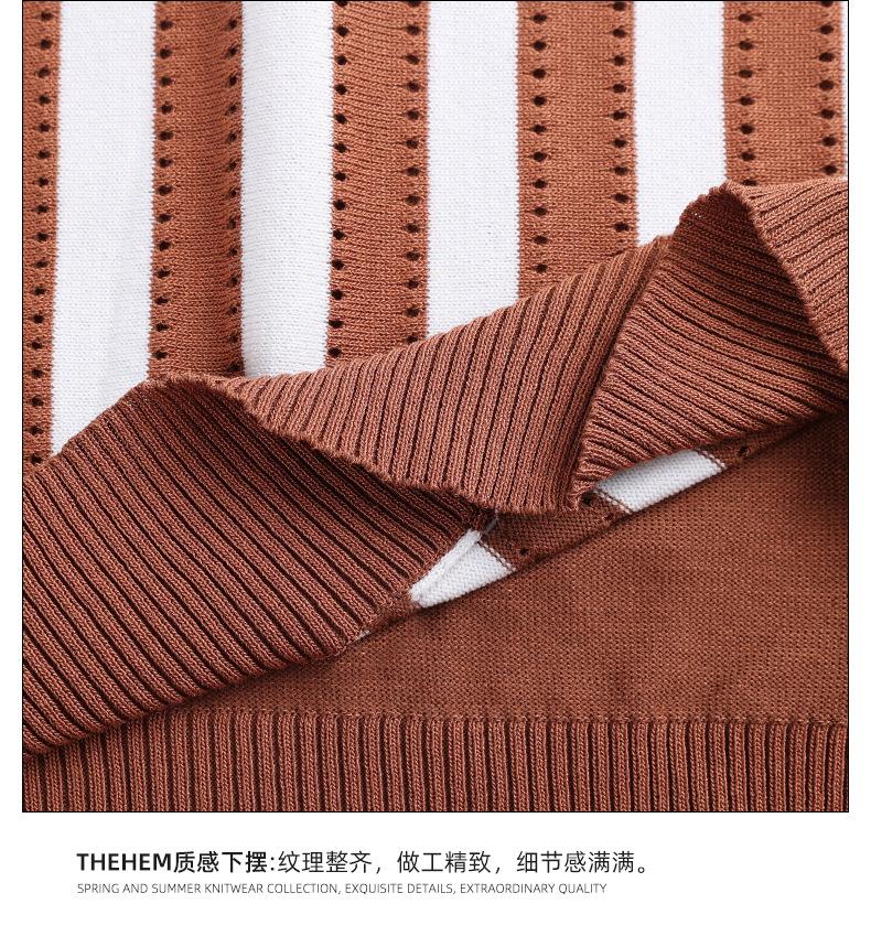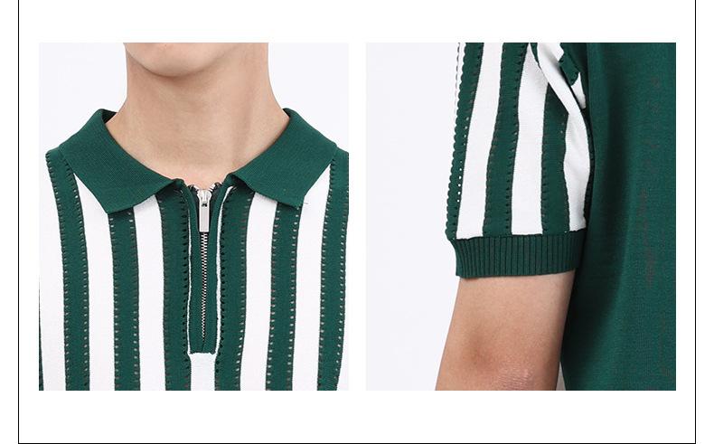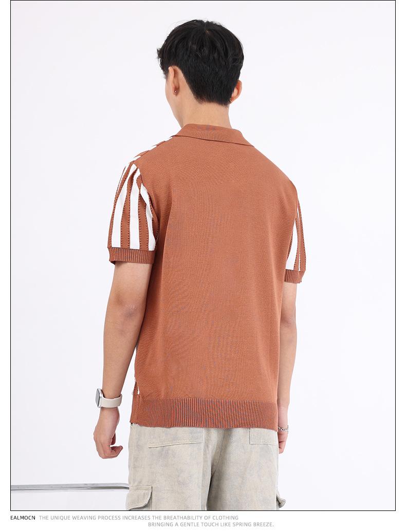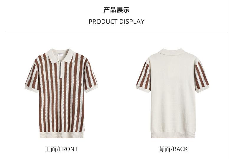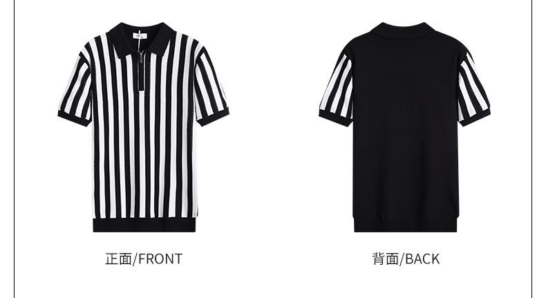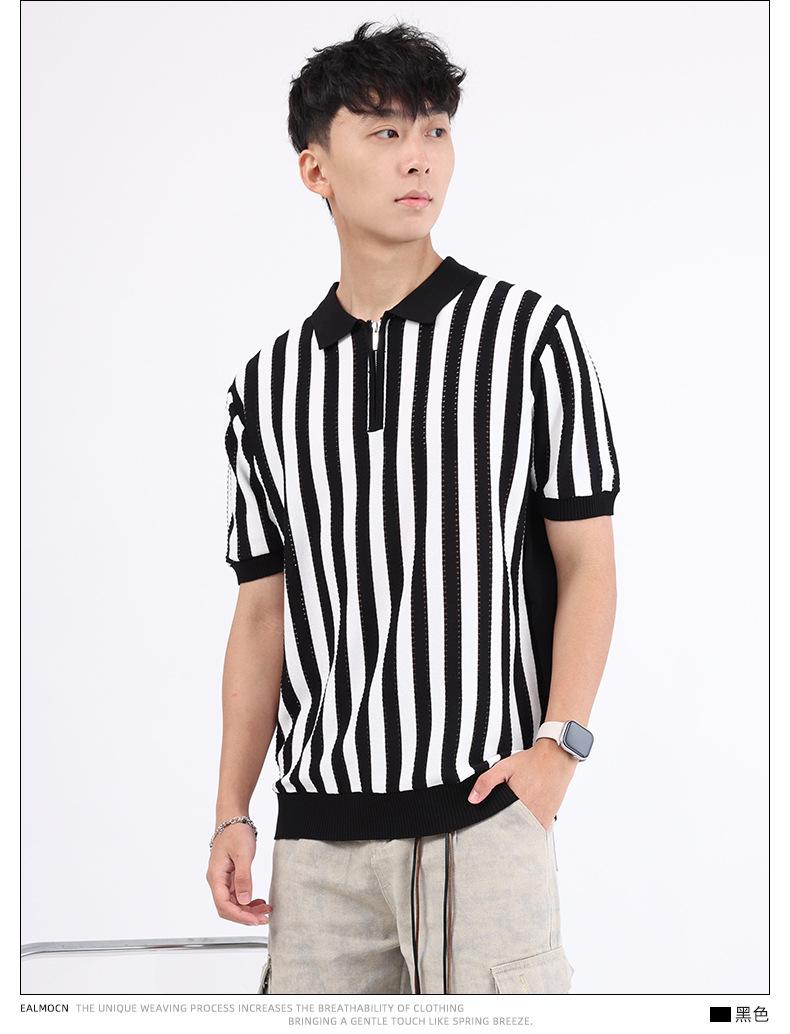 Polo de Seda de Hielo de Manga Corta para Hombre Sensación de Alta Gama Camiseta de Rayas para Hombre Verano Estilo Americano Casual de Negocios Paul